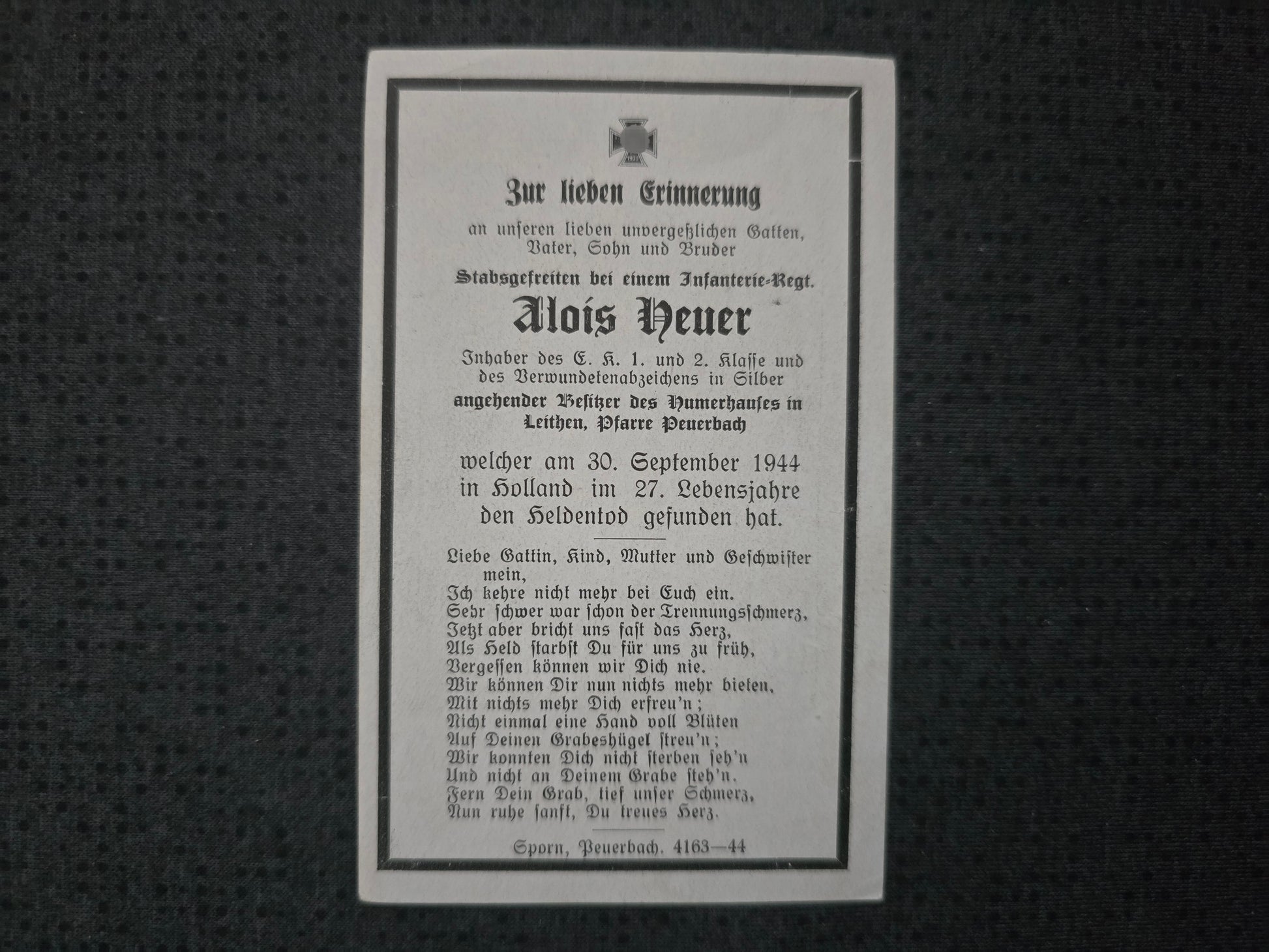 Sterbebild Stabsgefreiter Leithen Infanterie Regt. VWA silber Holland Kleve-Donsbrüggen