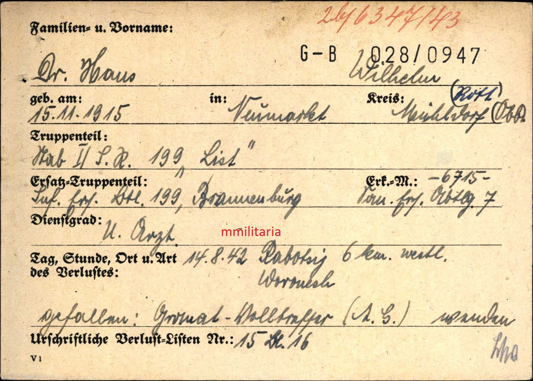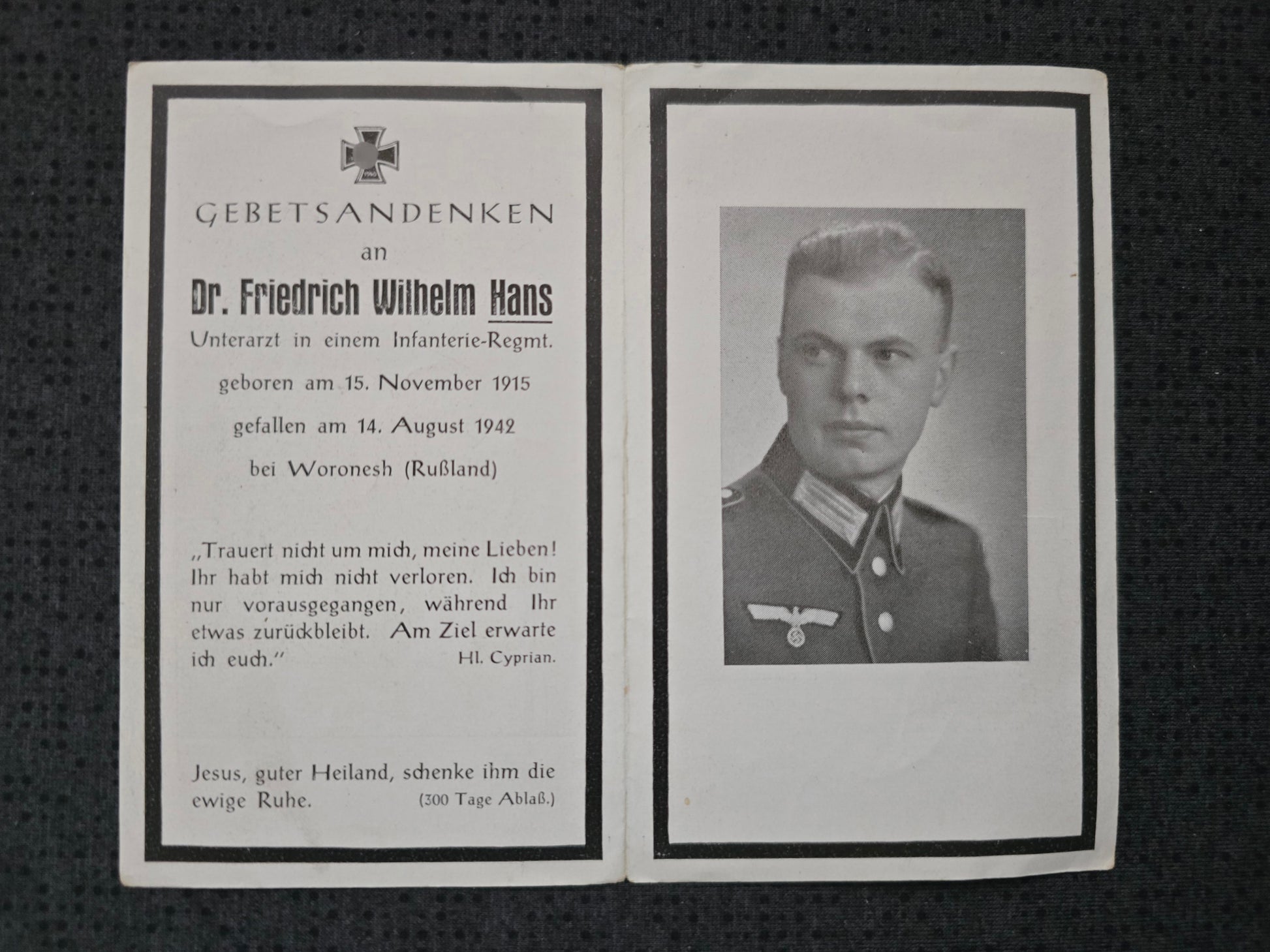 Sterbebild Unterarzt Neumarkt Stab Inf. Regt. 199 "List" Woronesch Russland