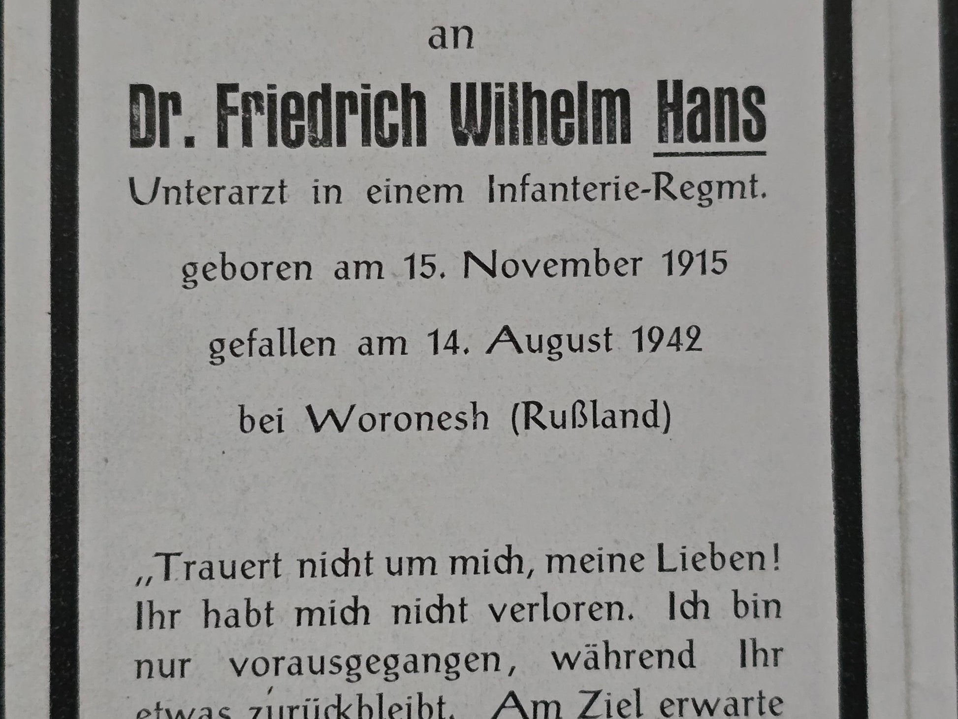 Gefallen am 14.08.1942 bei Woronesch (Russland)