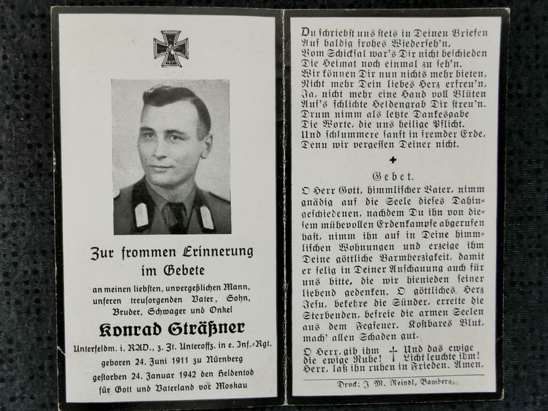 Sterbebild Unterfeldmeister im RAD Unteroffizier 9. Infanterie Regt. 351 Moskau Berjosa Weissrussland