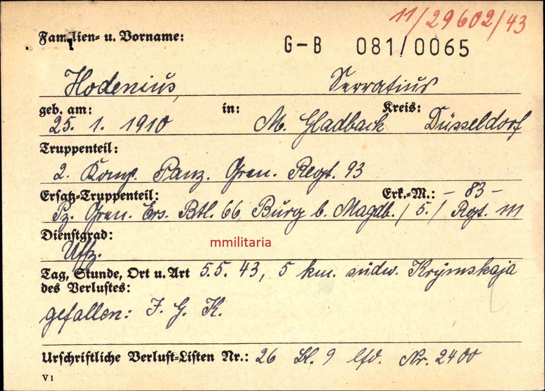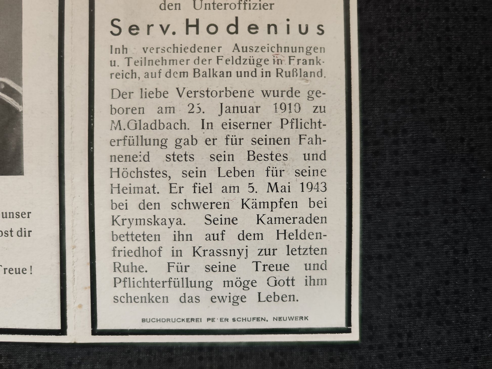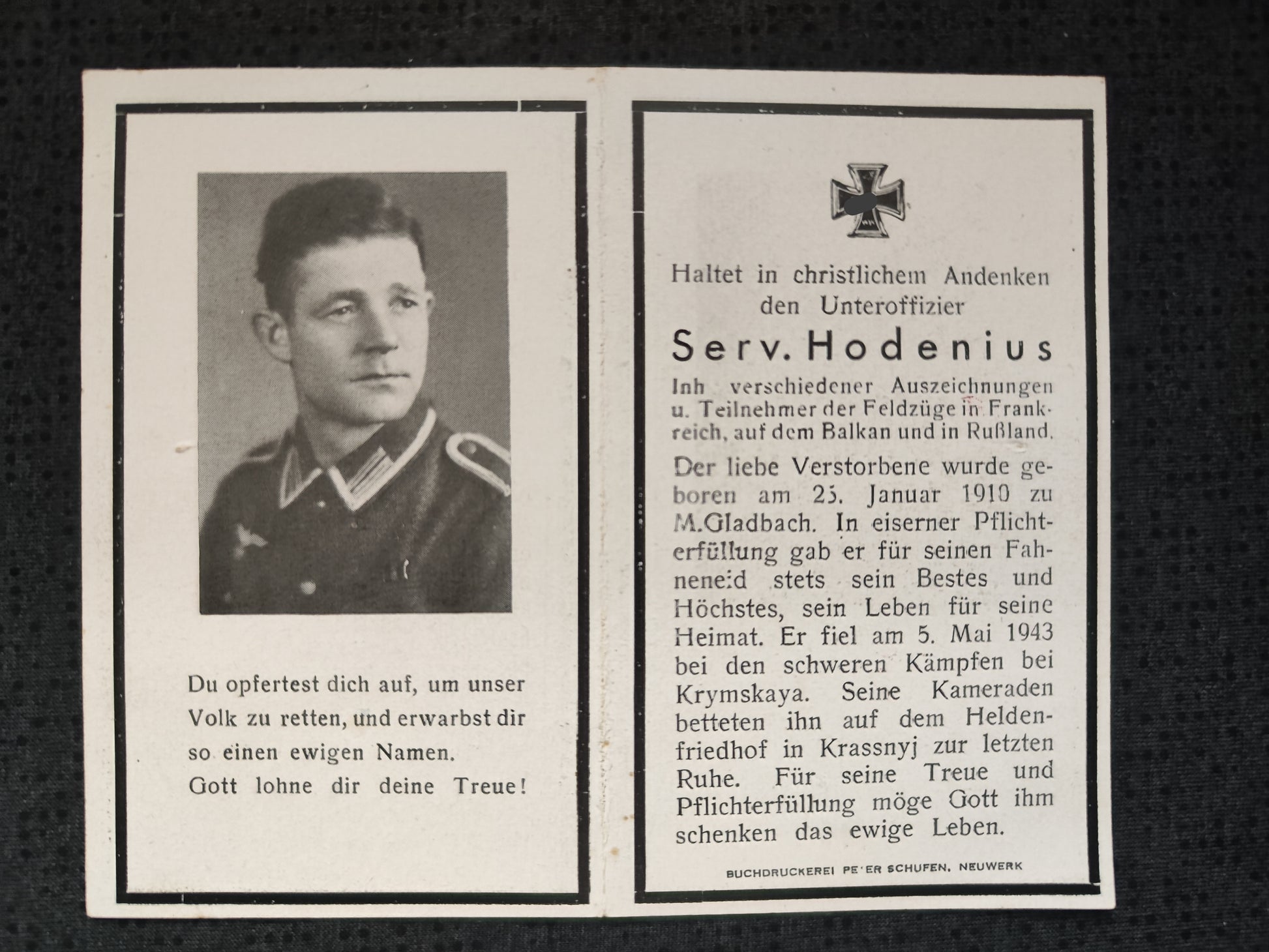 Sterbebild Unteroffizier 2. Komp. Panzer Gren. Regt. 93 Krymskaja Krasnodar Russland