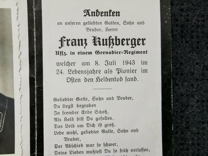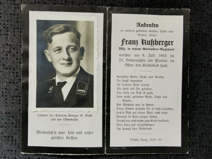 Sterbebild Unteroffizier 3. Komp. Pionier Btl. 81 EK II Echtfoto Ssowiza Kursk Russland