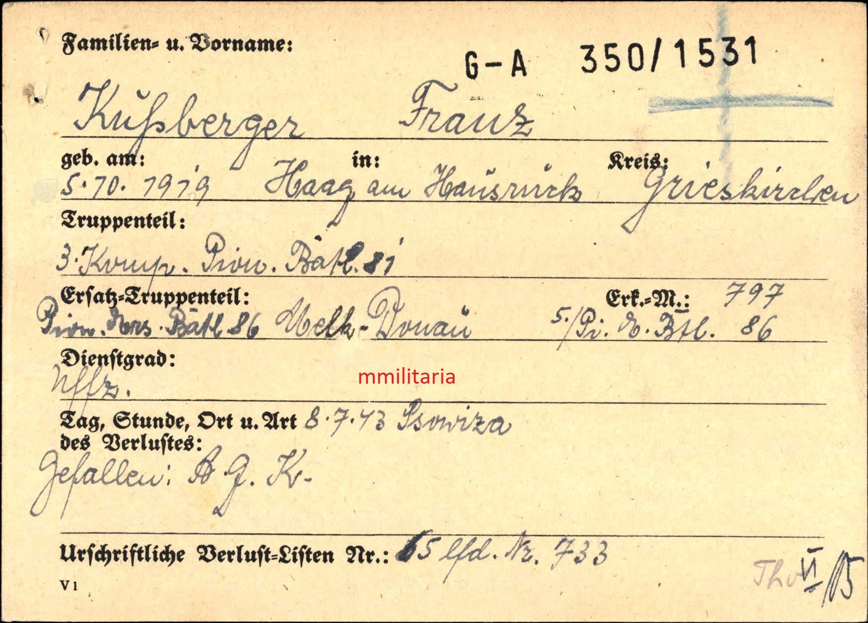 Gefallen am 08.07.1943 bei Ssowiza (Russland)