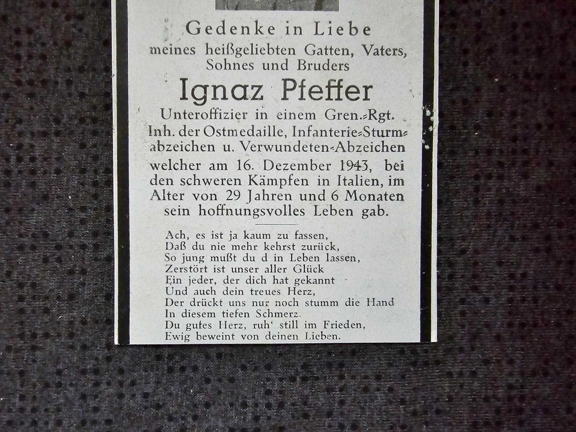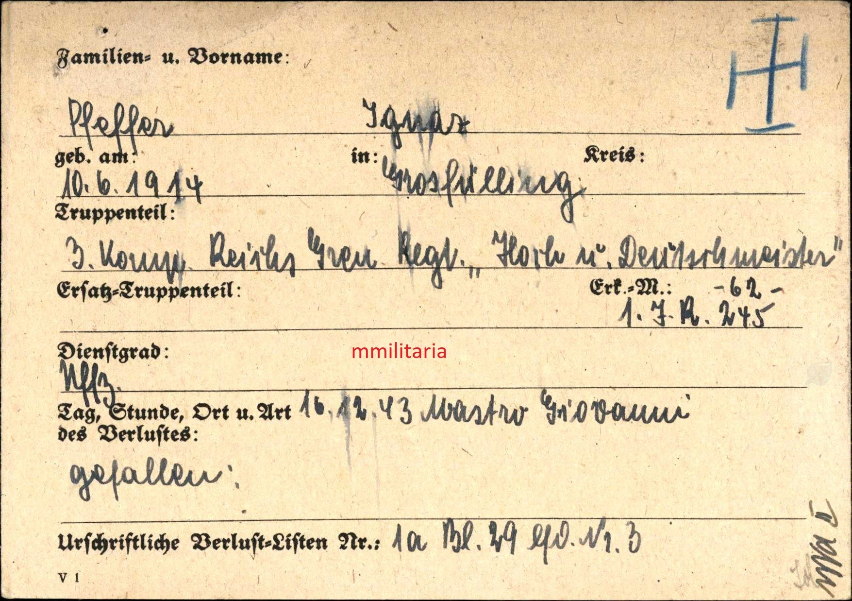 Gefallen am 16.12.1943 bei Höhe 760 Mastro Giovanni (Italien)