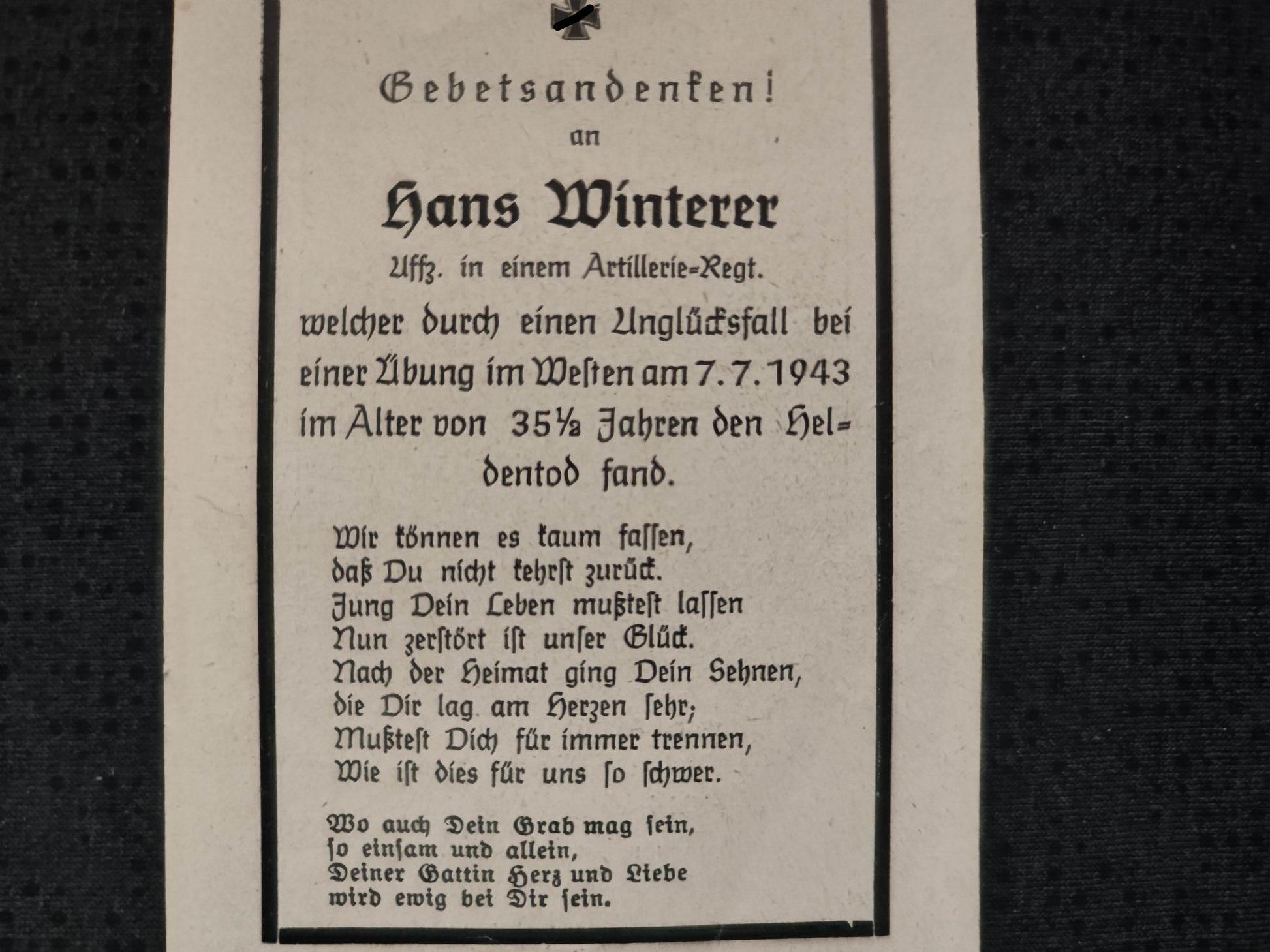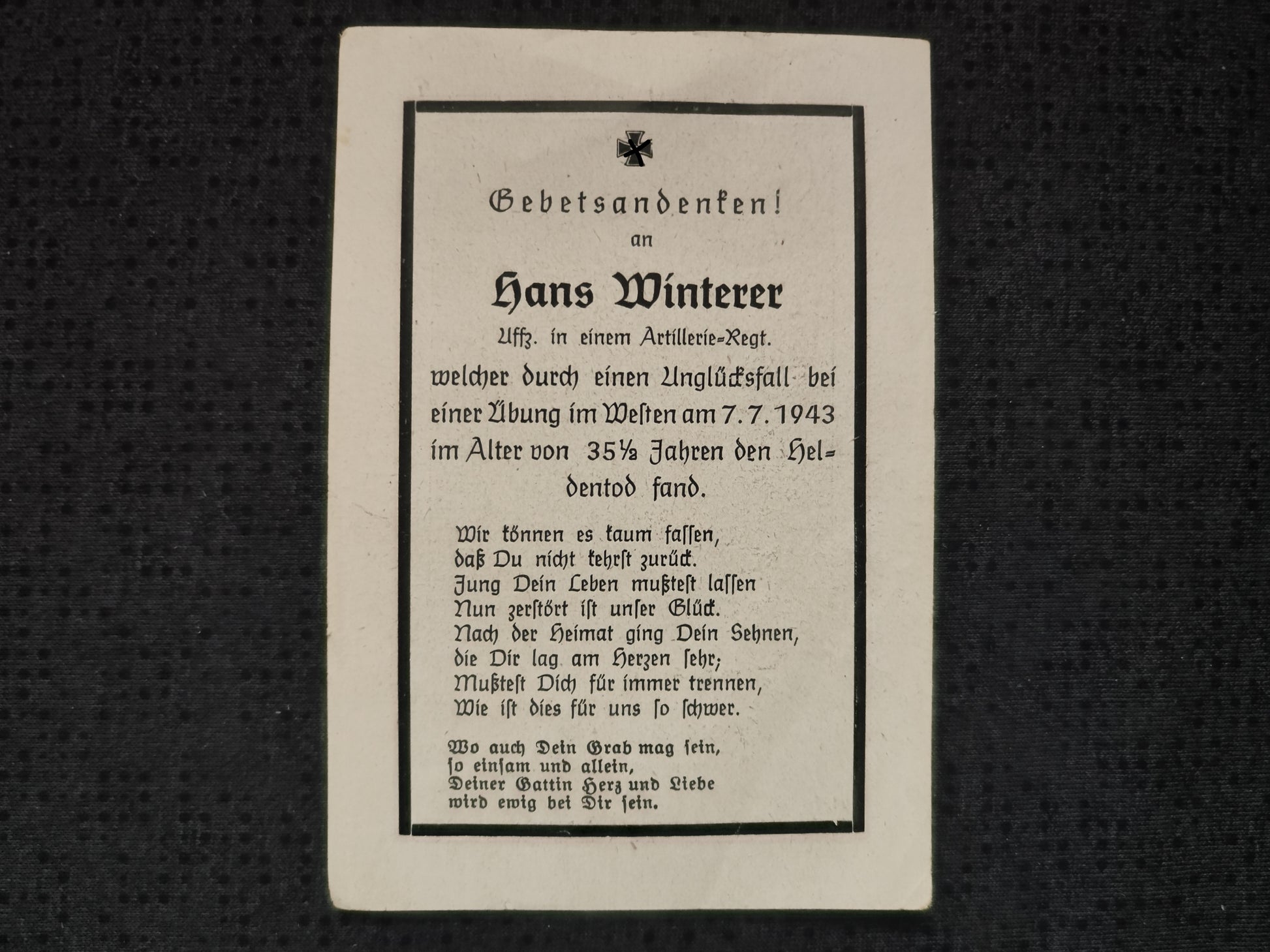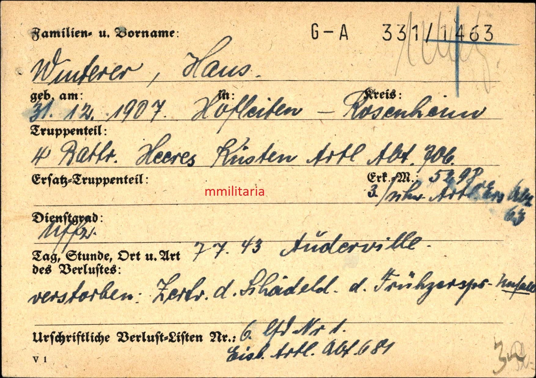 Sterbebild Unteroffizier 4. Batterie Heeres Küsten Art. Abt. 706 Audeville Normandie Marigny Frankreich
