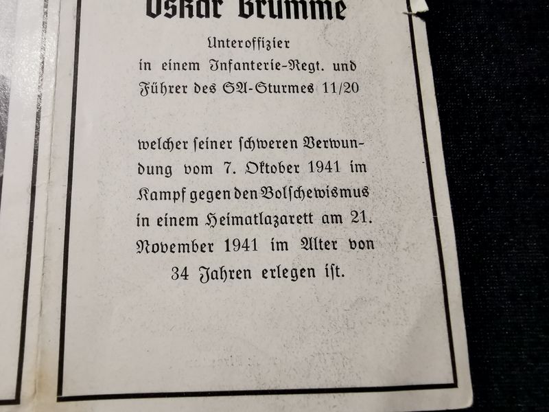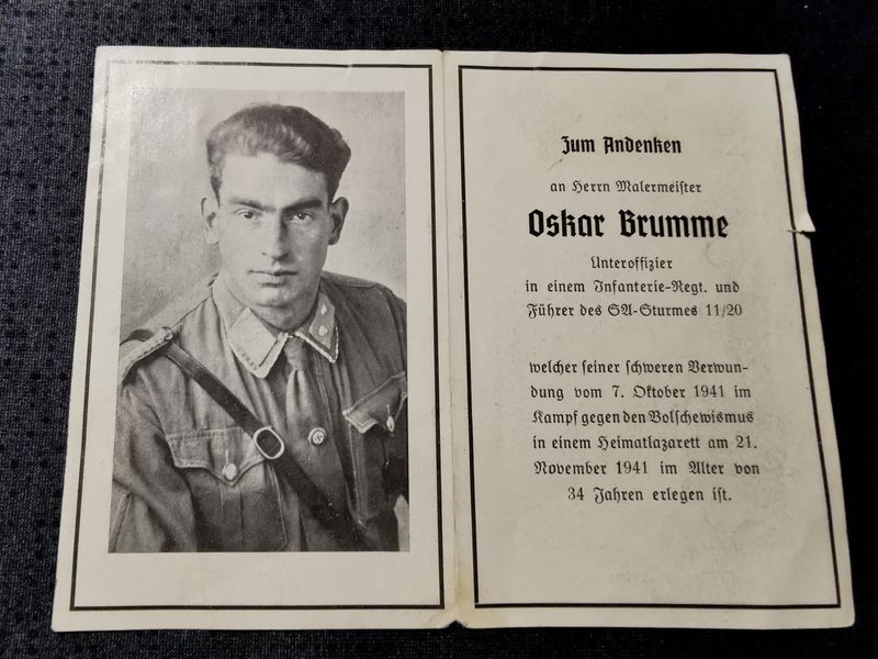 Sterbebild Unteroffizier 9. Komp. Inf. Regt. 499 Führer des SA-Sturms 11/20 Chemnitz Deutschland