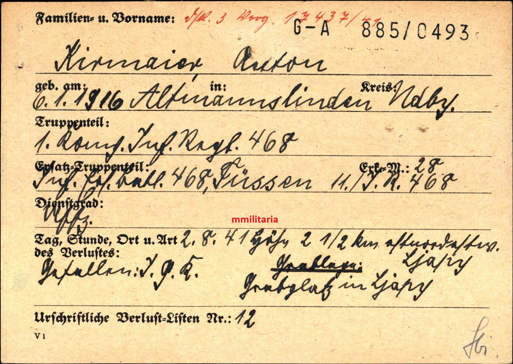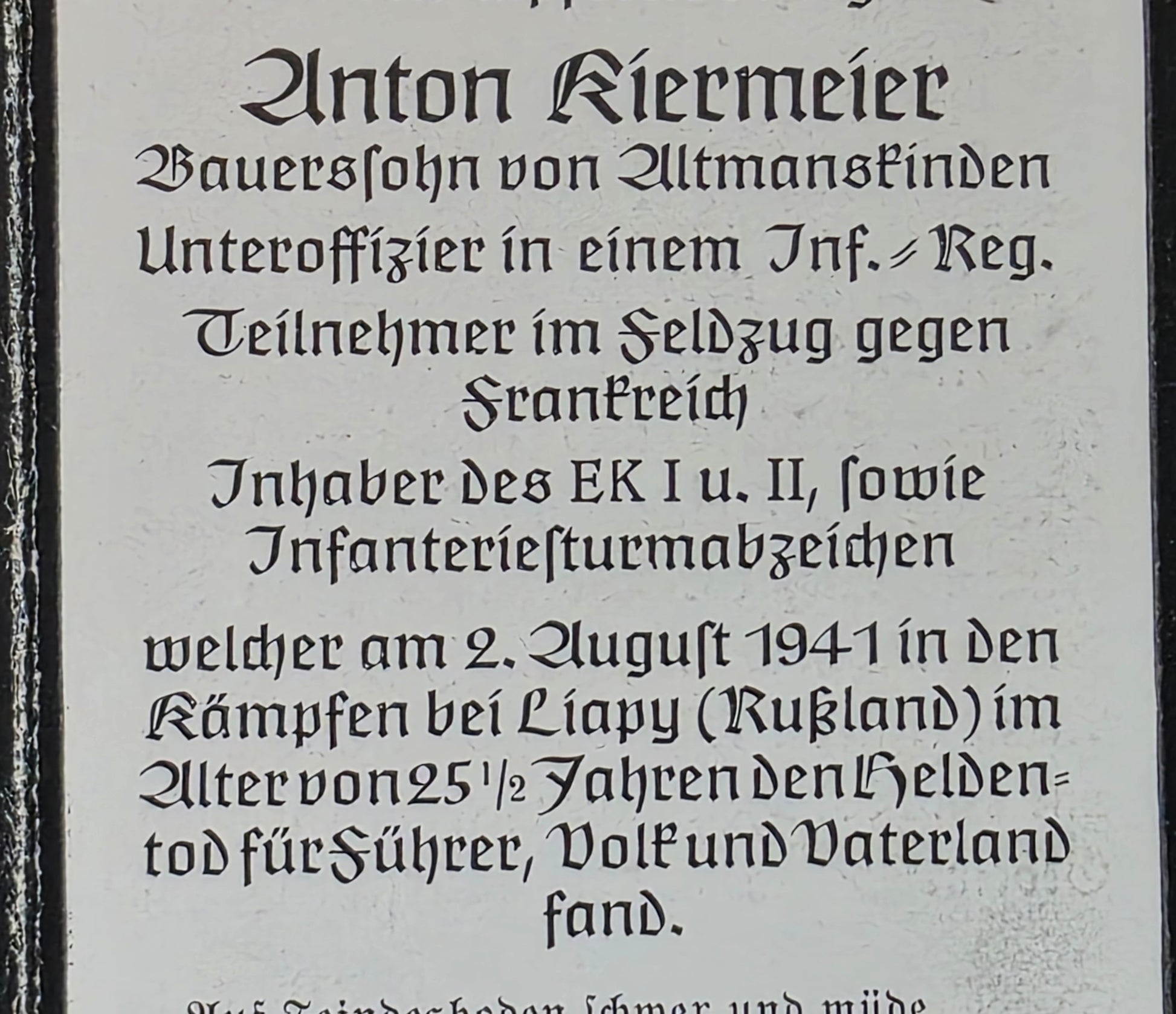 Gefallen am 02.08.1941 bei Ljapy (Russland)