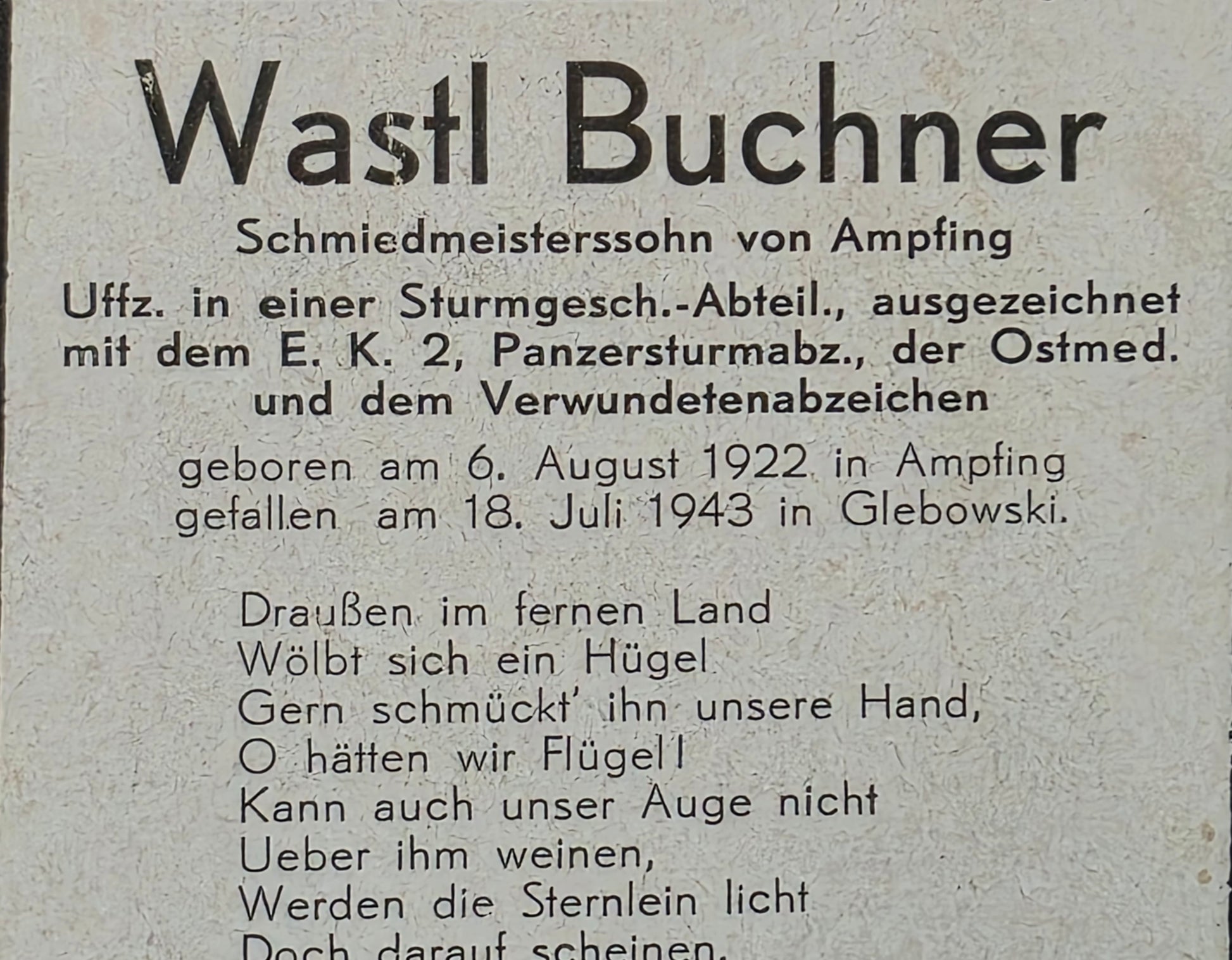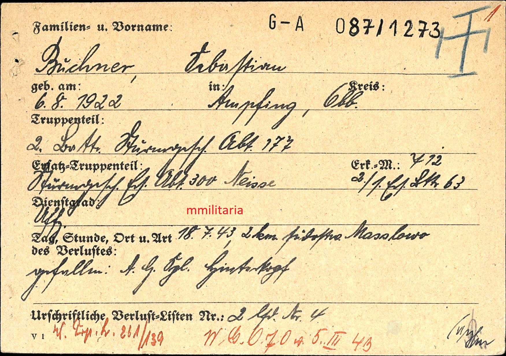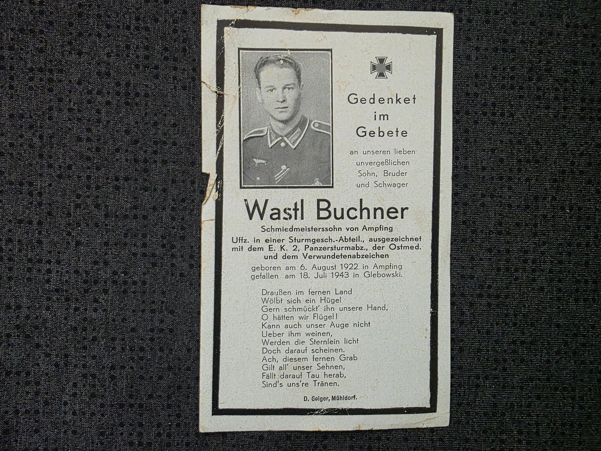 Sterbebild Unteroffizier Ampfing 2. Batterie Sturmgeschütz Abt. 177 PSA Masslowo Russland