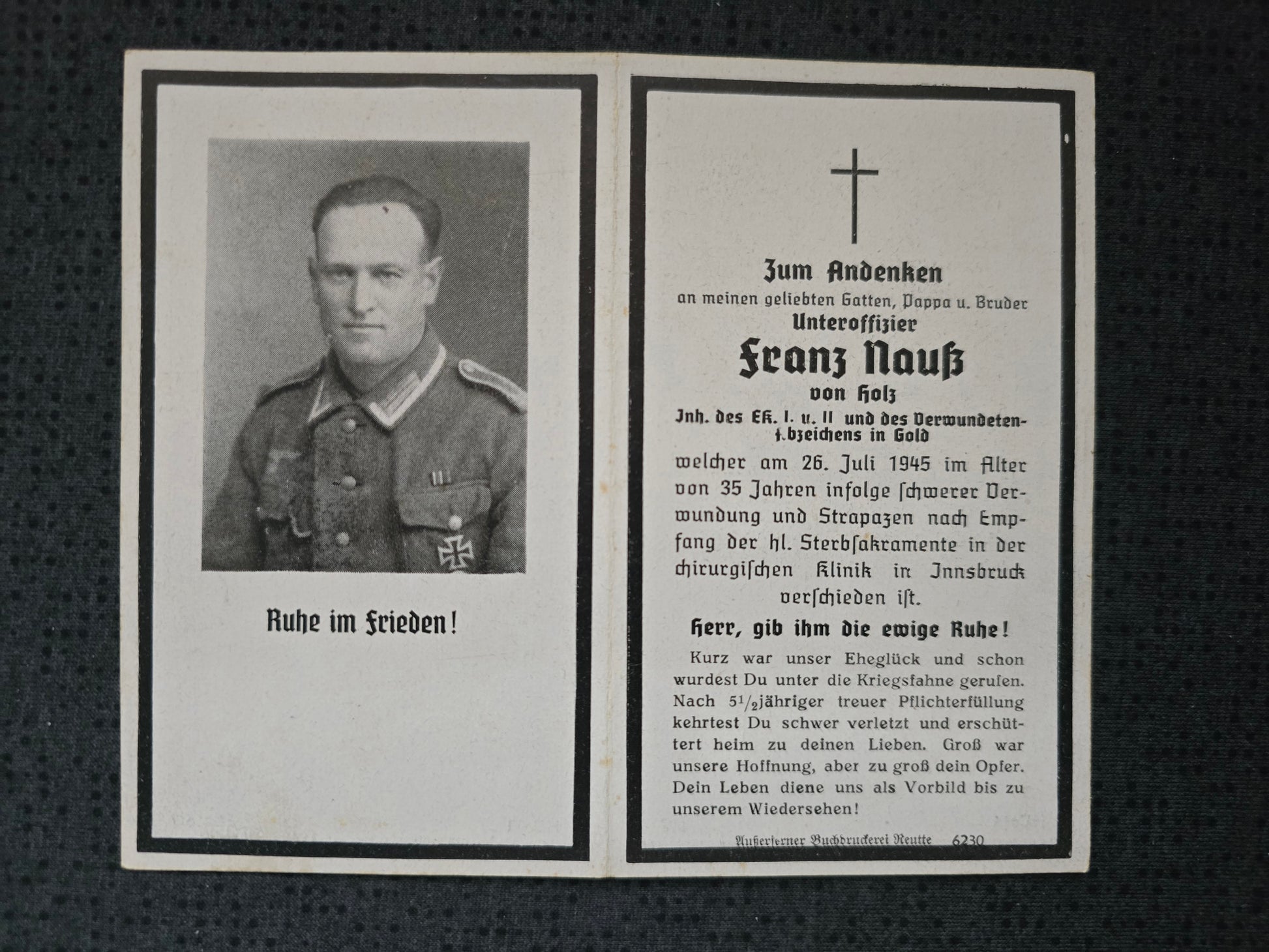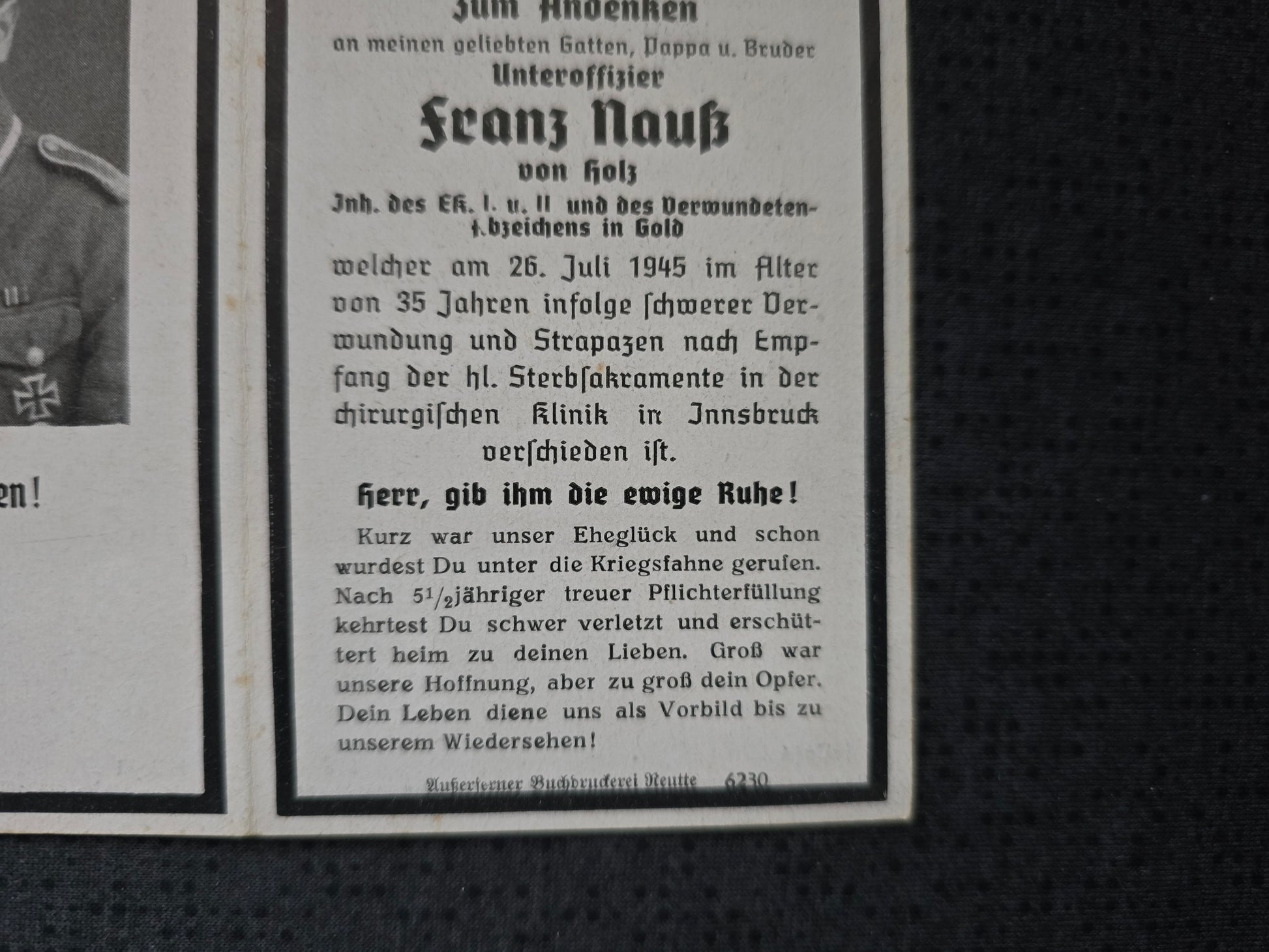 Sterbebild Unteroffizier EK I&II VWA Gold Endkampf Innsbruck Österreich