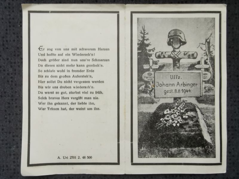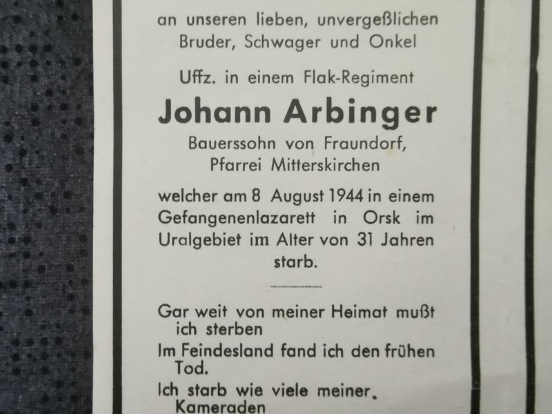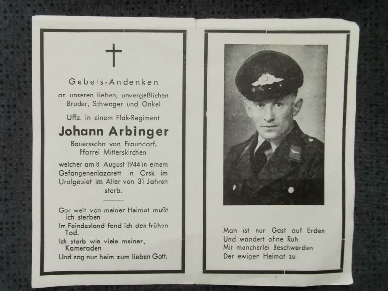 Sterbebild Unteroffizier Flak Regt. Gefangenenlazarett Orsk Ural Sibirien Russland