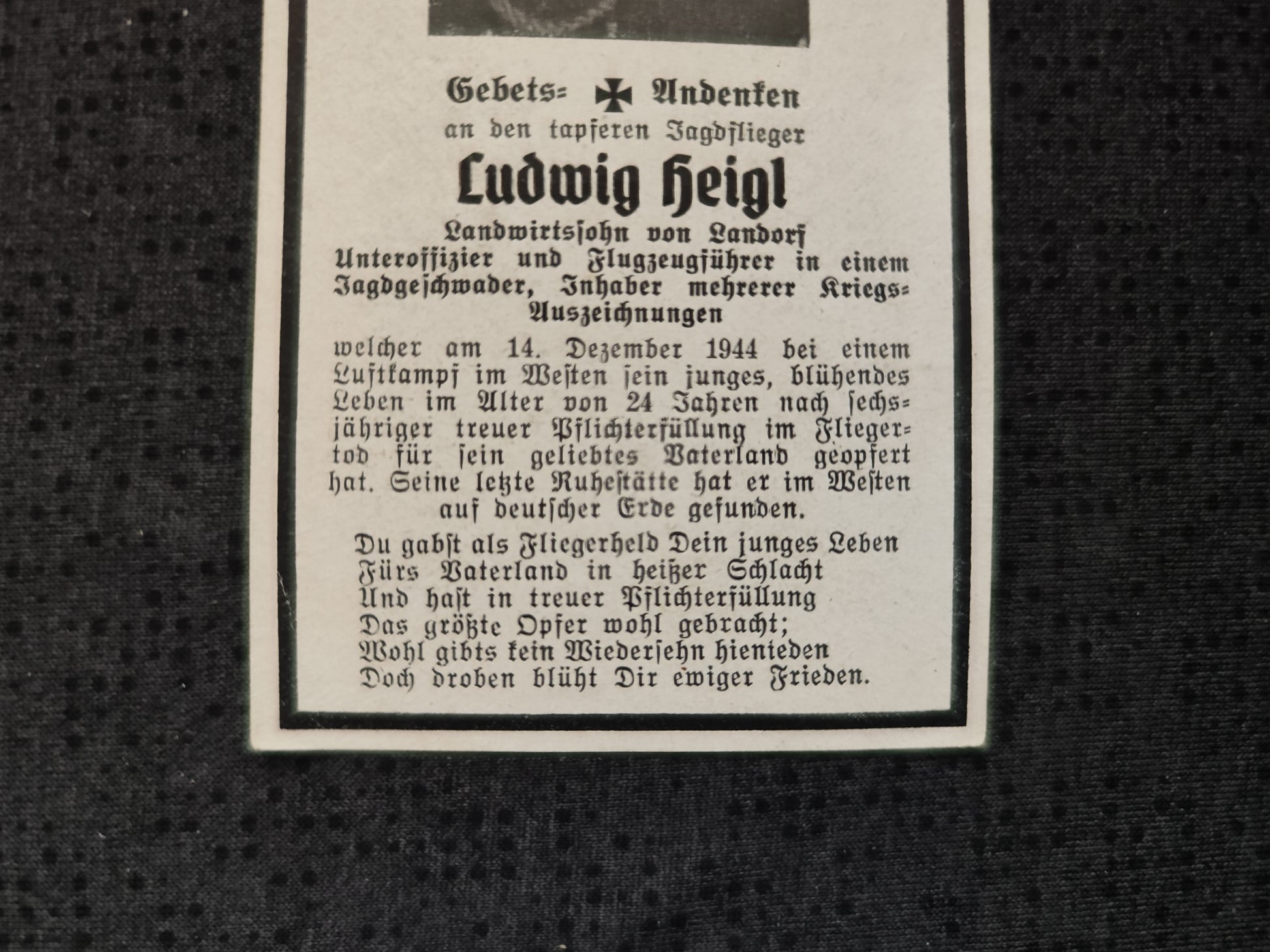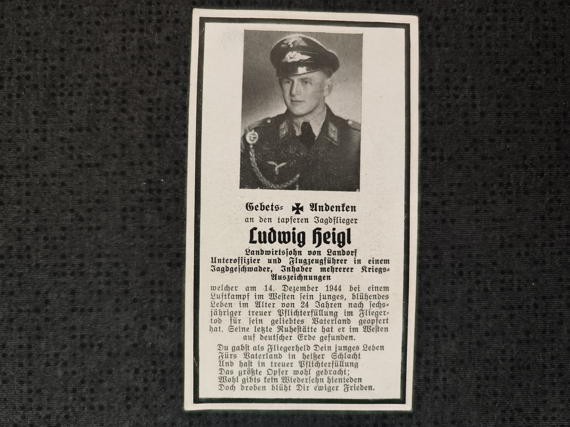Sterbebild Unteroffizier Flugzeugführer Landorf 15. Staffel Jagdgeschwader 4 Bf 109 Niederwald Westen
