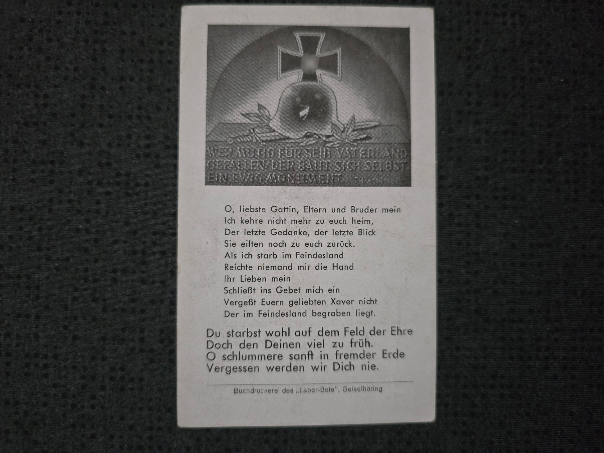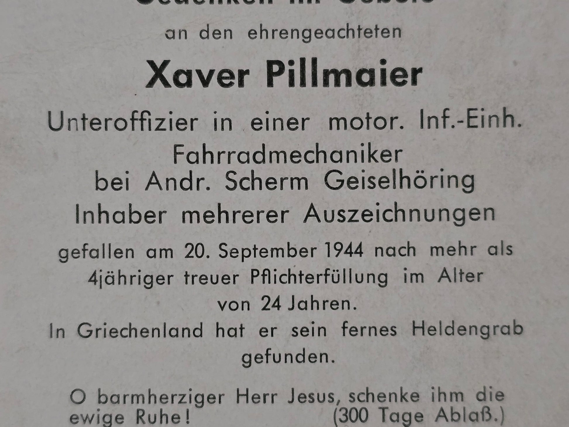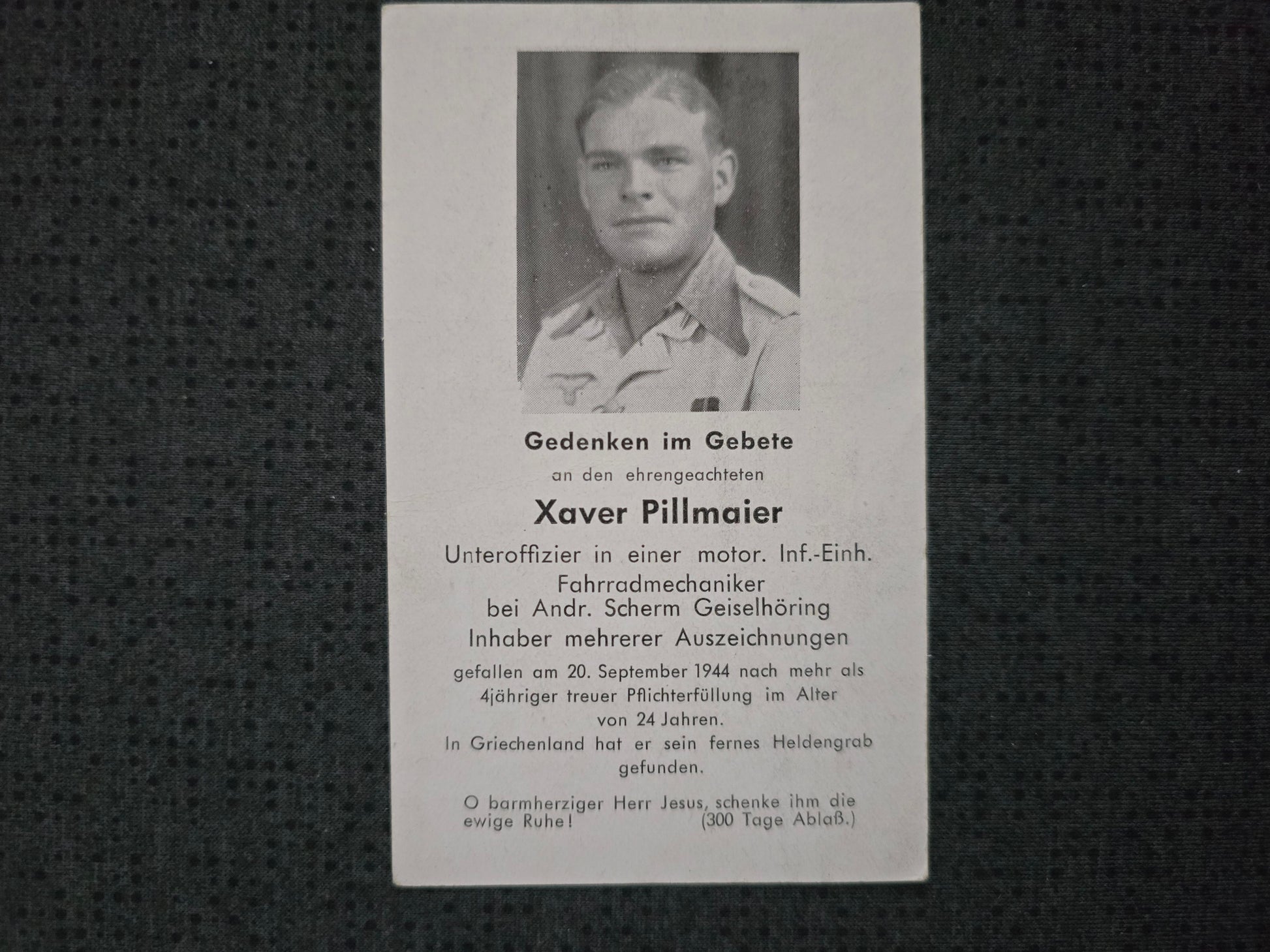 Sterbebild Unteroffizier Geiselhöring III/Gren. Regt. Rhodos Warwaras Griechenland