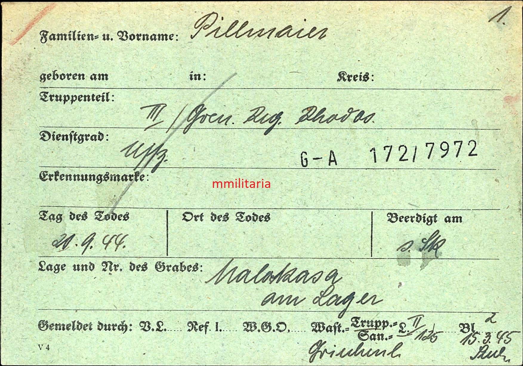 Gefallen am 20.09.1944 bei Warwaras (Griechenland)