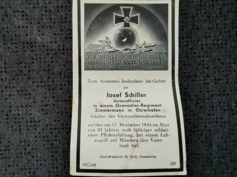 Sterbebild Unteroffizier Landesschützen Ersatz und Ausbildung Btl. 7 Luftangriff München Deutschland