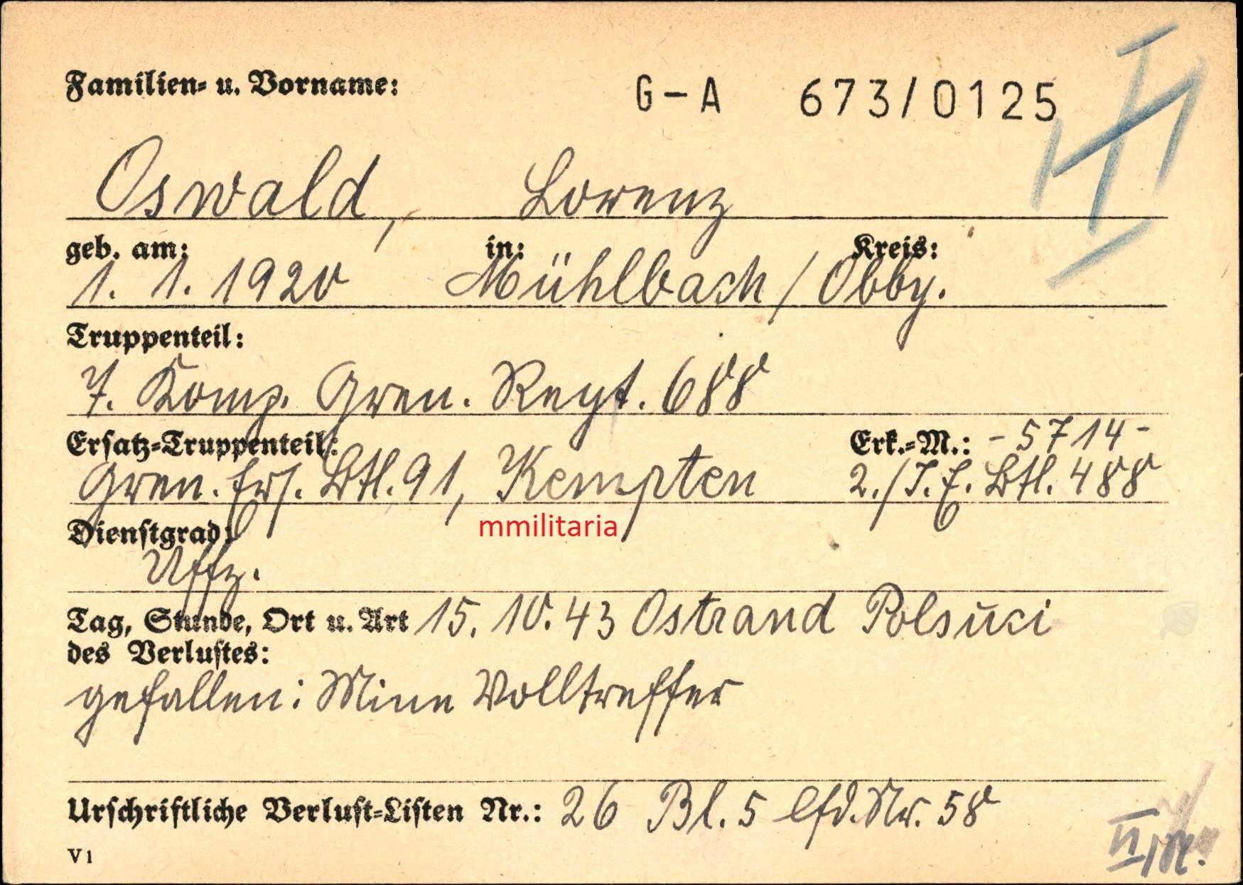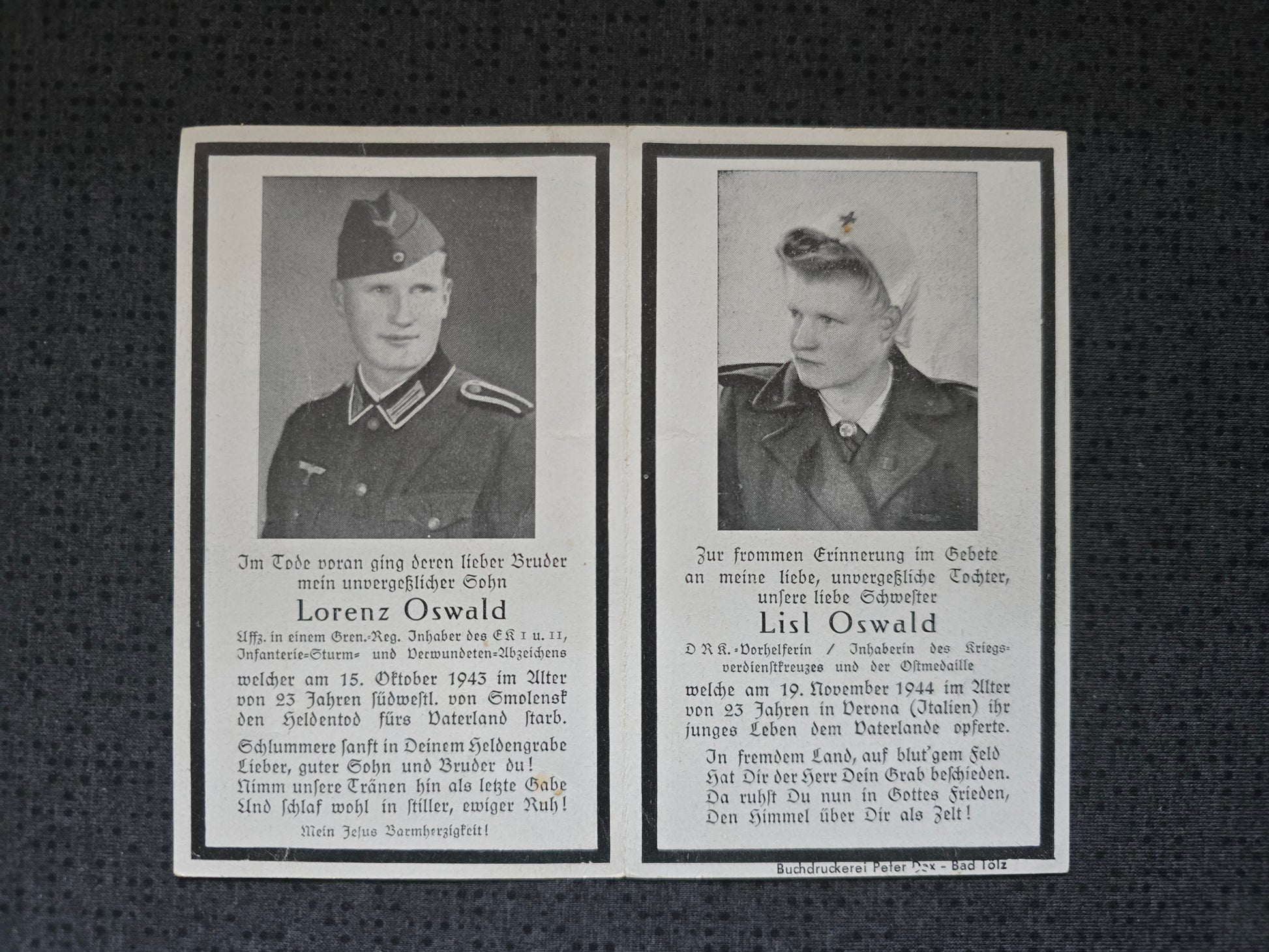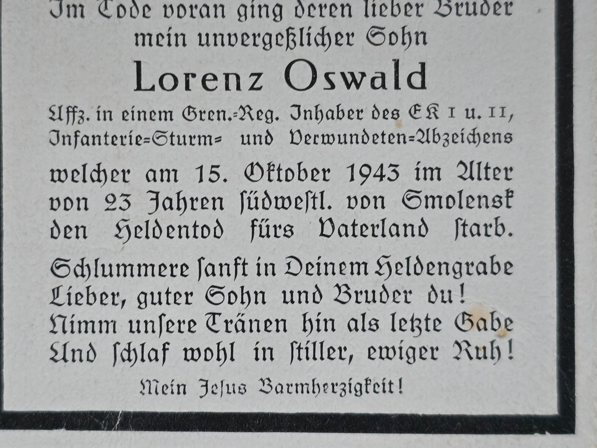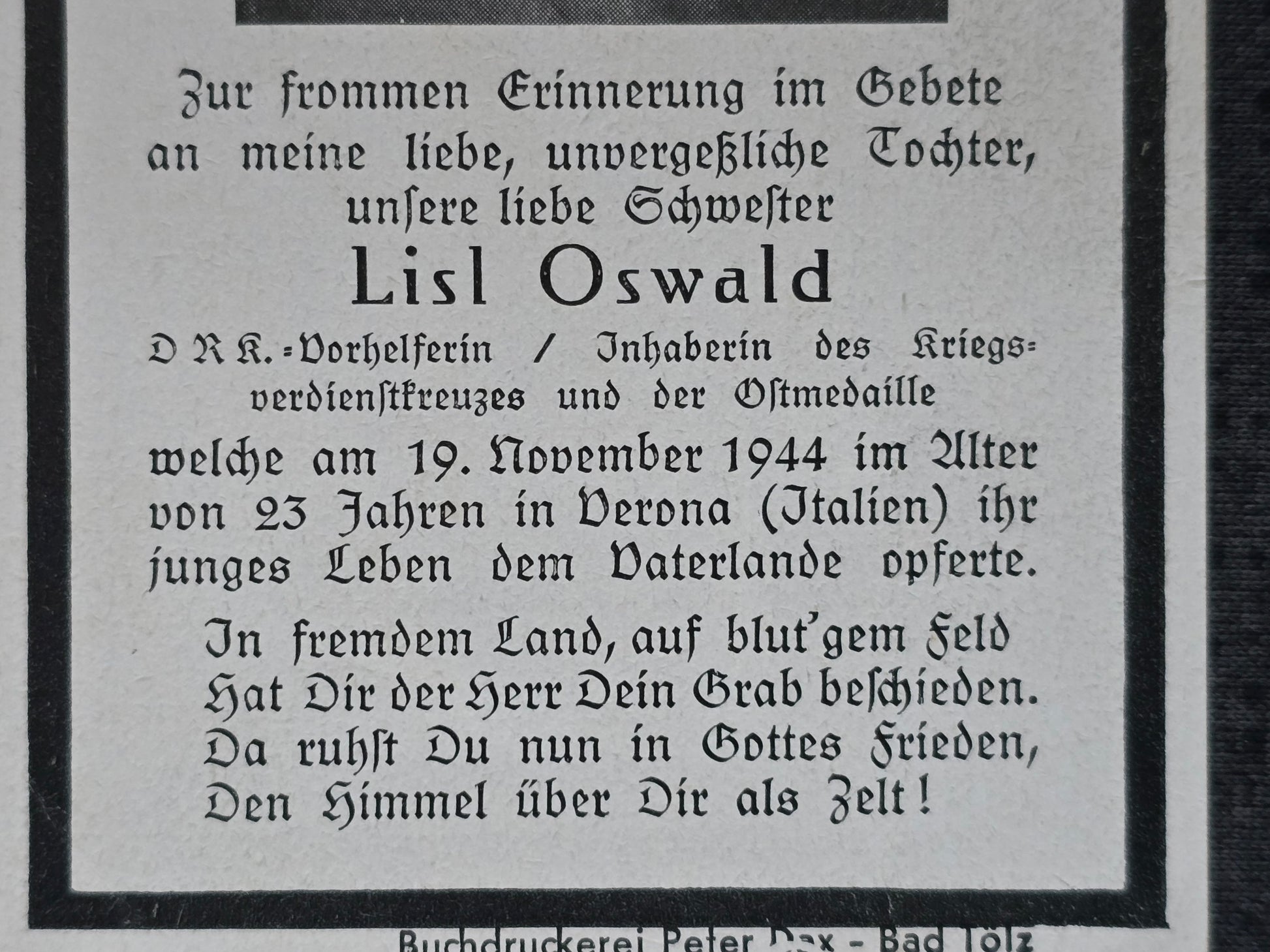 Sterbebild Unteroffizier Lenggries 7. Komp. Gren. Regt. 688 EK I&II Smolensk DRK Vorhelferin KvK Verona Italien