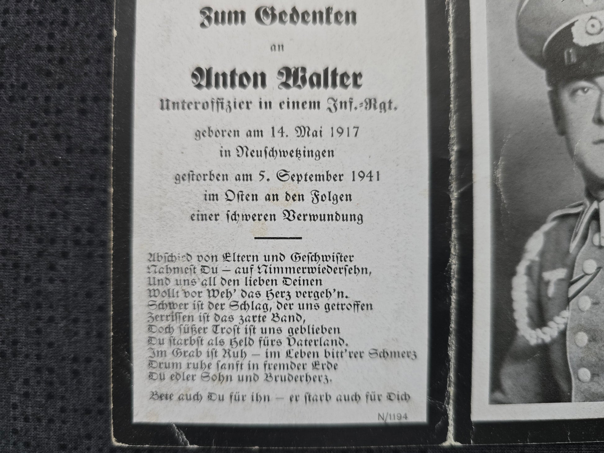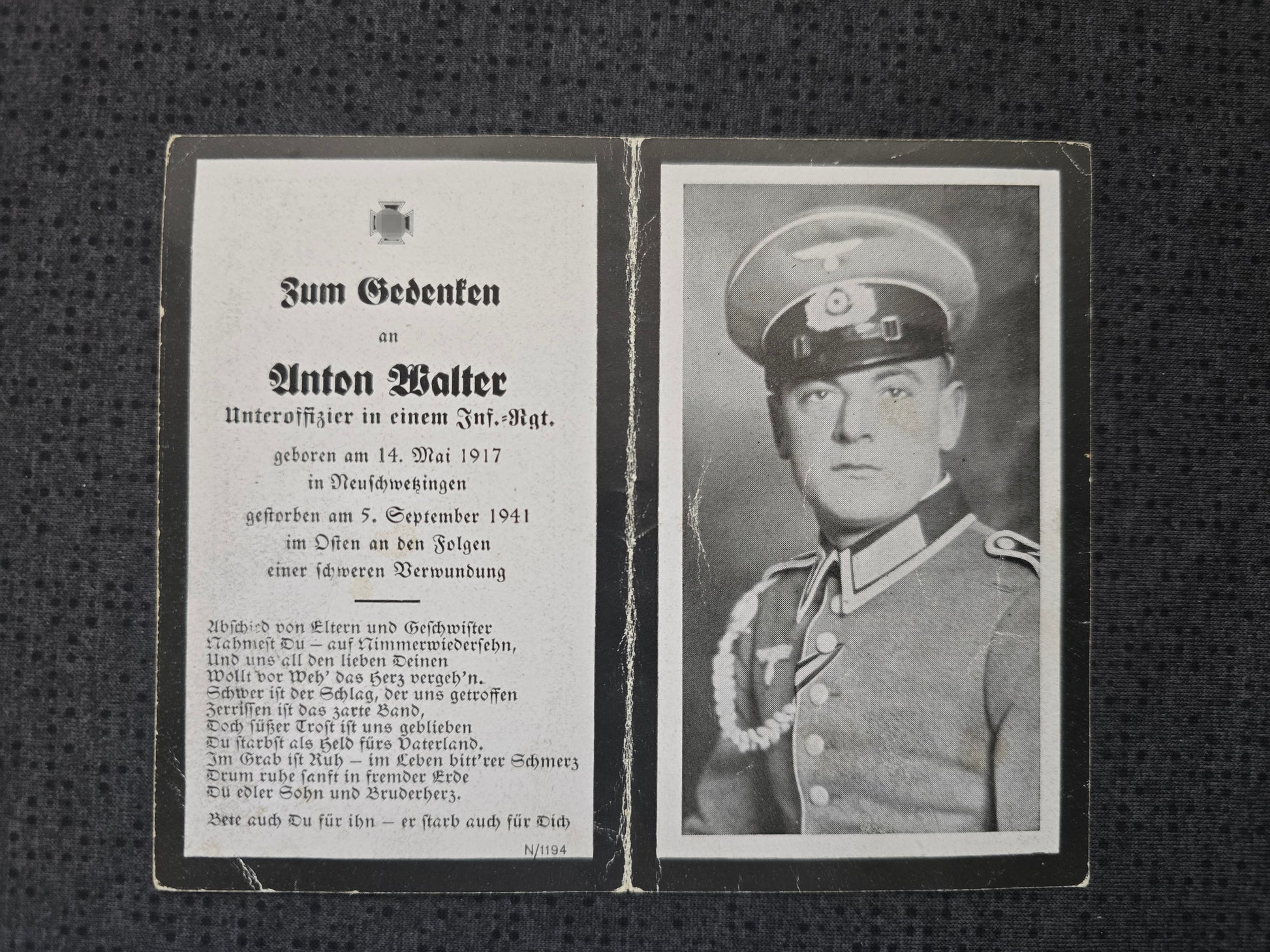 Sterbebild Unteroffizier Neuschwetzingen 3. Komp. Schützen Regt. 63 Witemlja Russland
