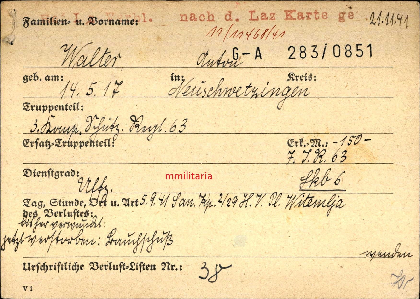 Gefallen am 05.09.1941 bei Witemlja (Russland)