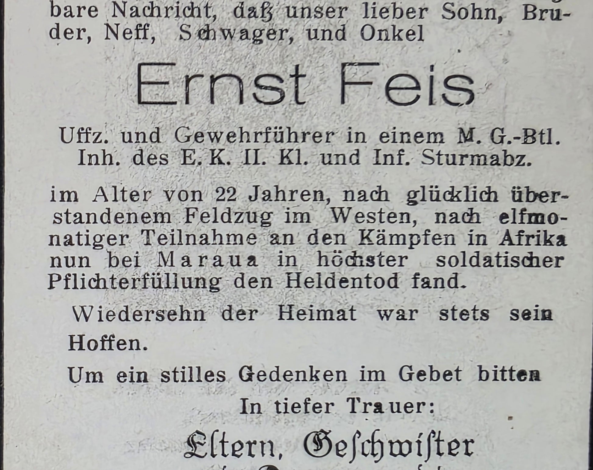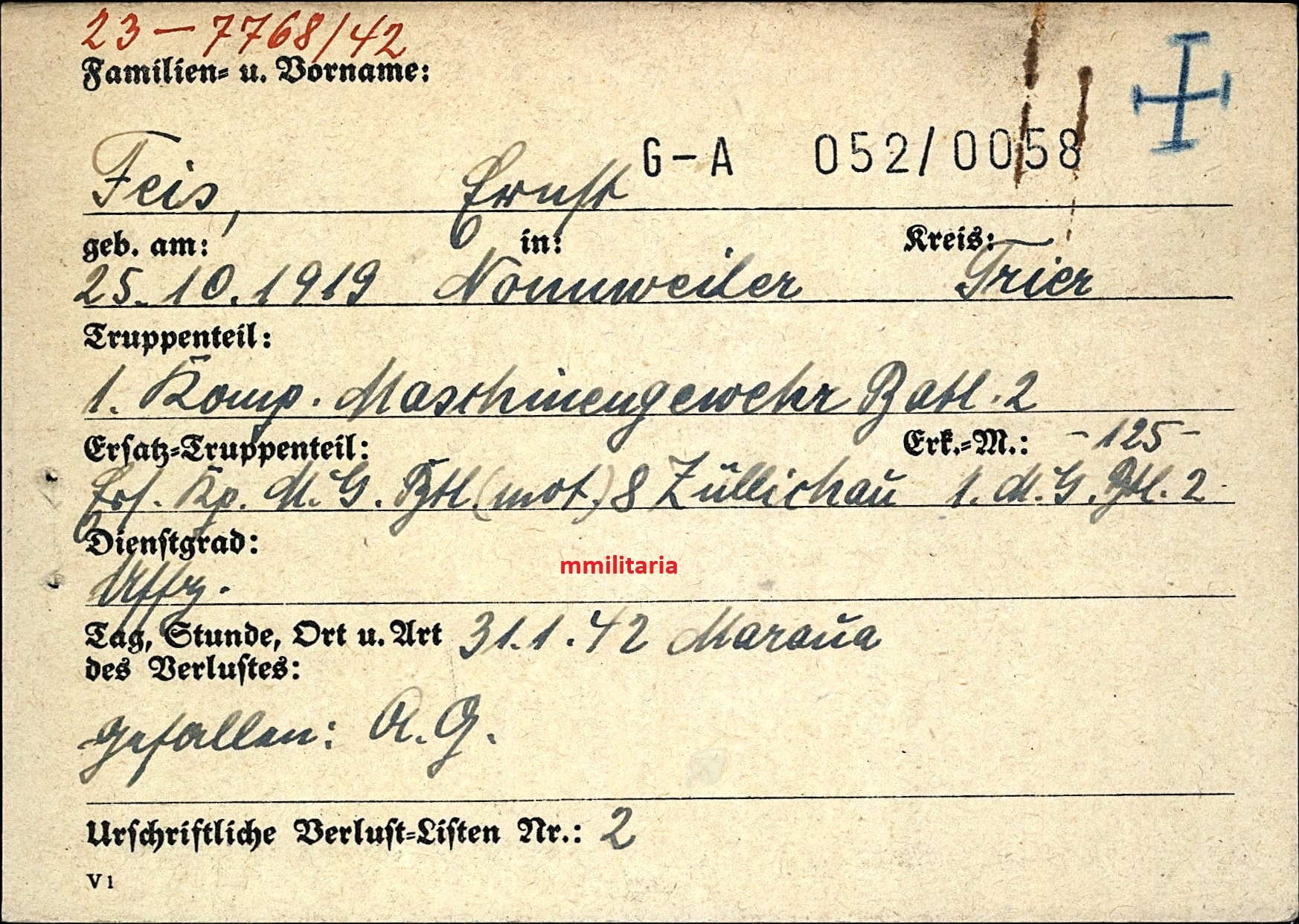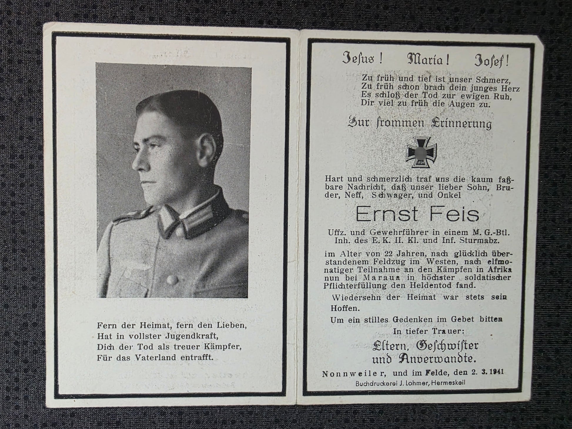 Sterbebild Unteroffizier Nonnweiler Gewehrführer 1. Komp. MG Btl. 2 DAK Maraua Tobruk Libyen