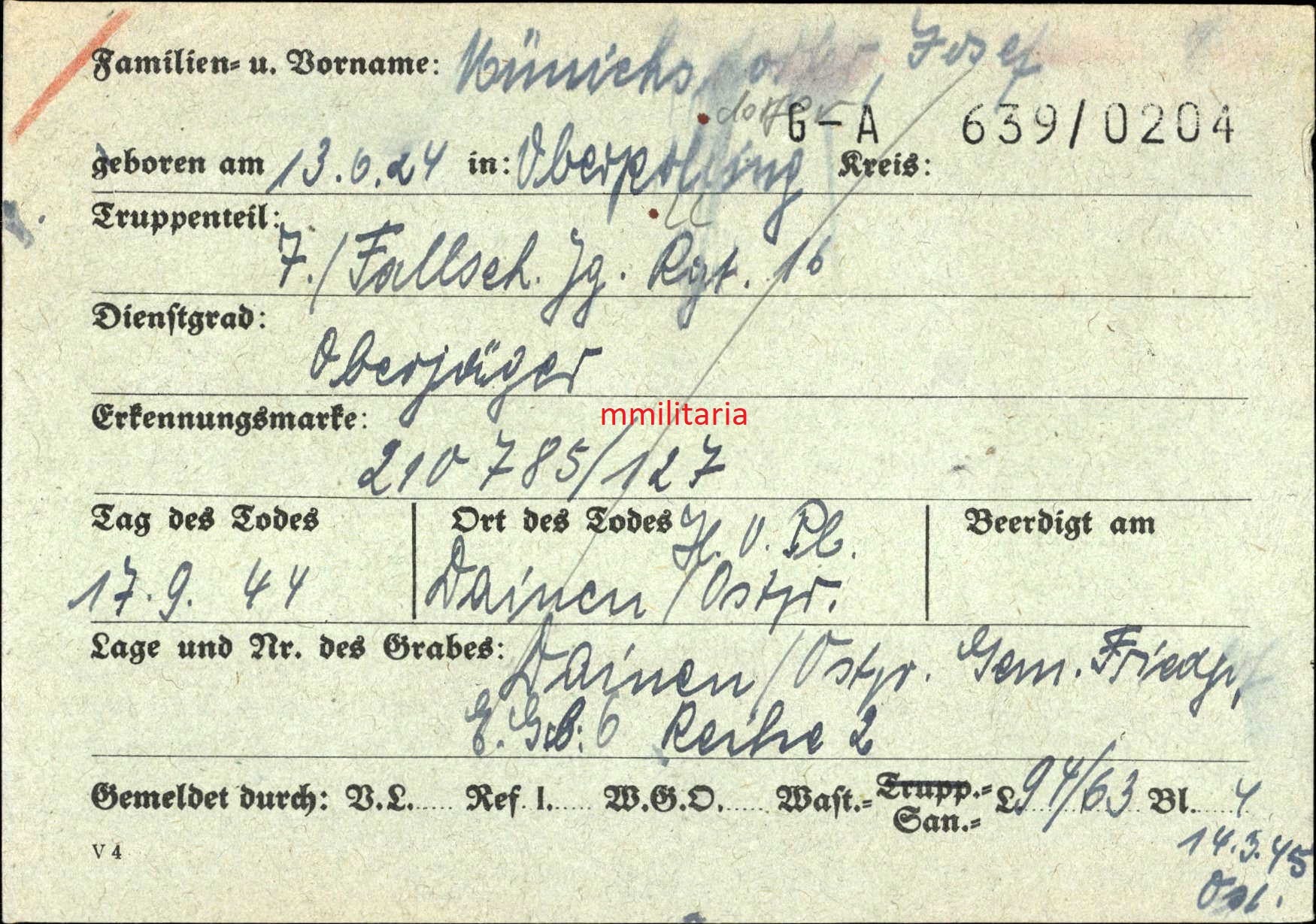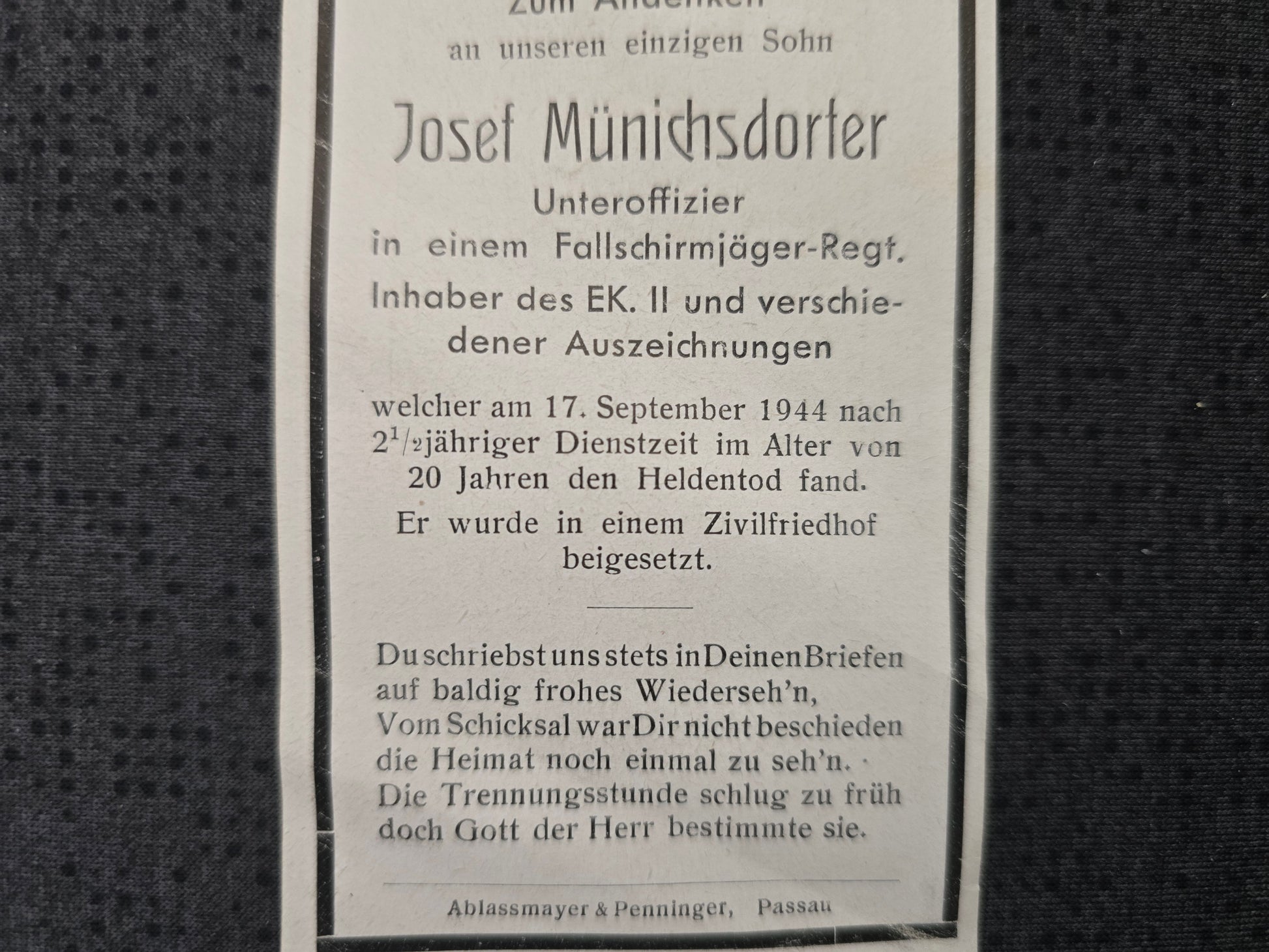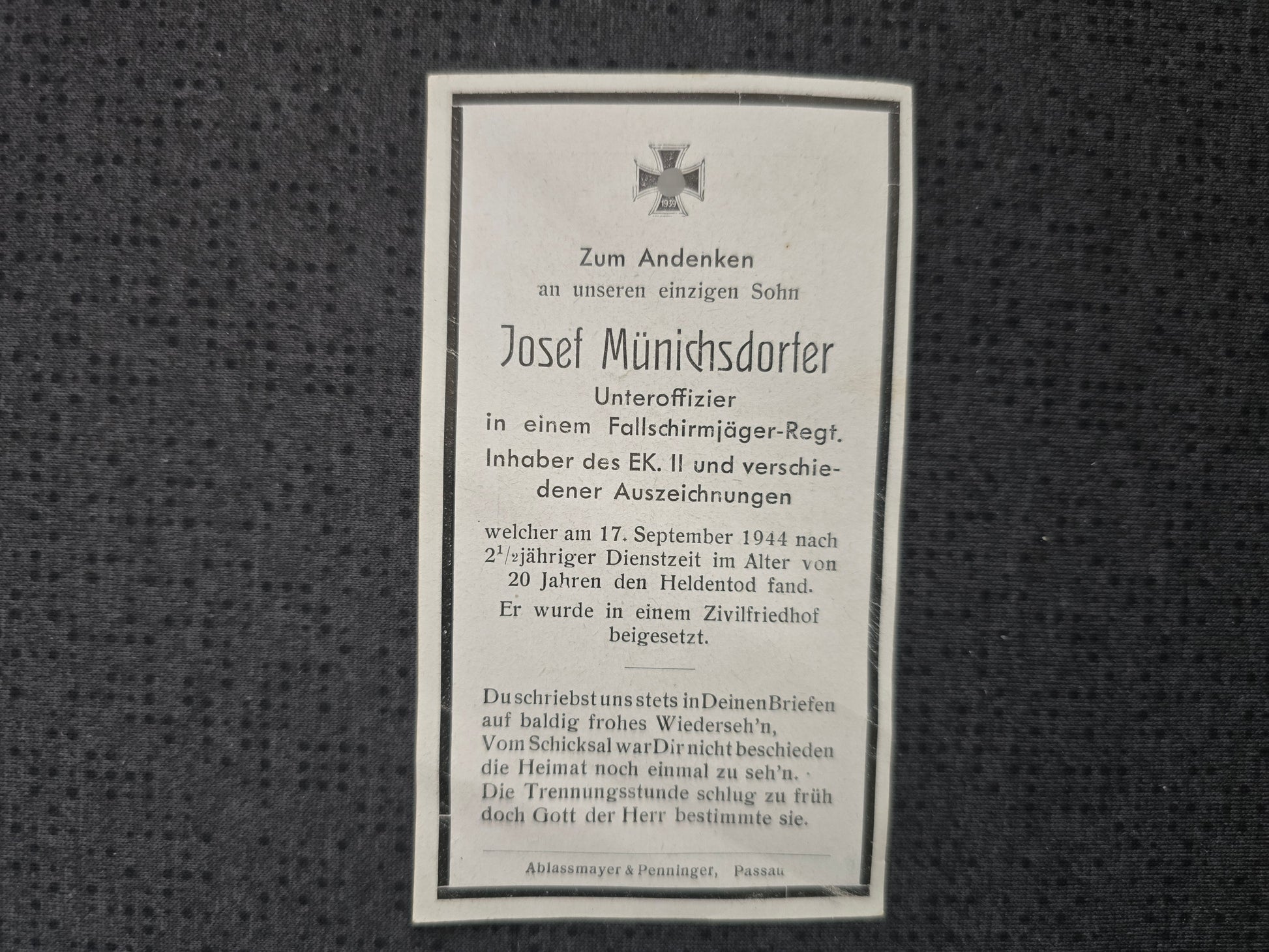 Sterbebild Unteroffizier Oberpolling 7. Fallschirmjäger Regt. 16 Dainen Ostpreußen