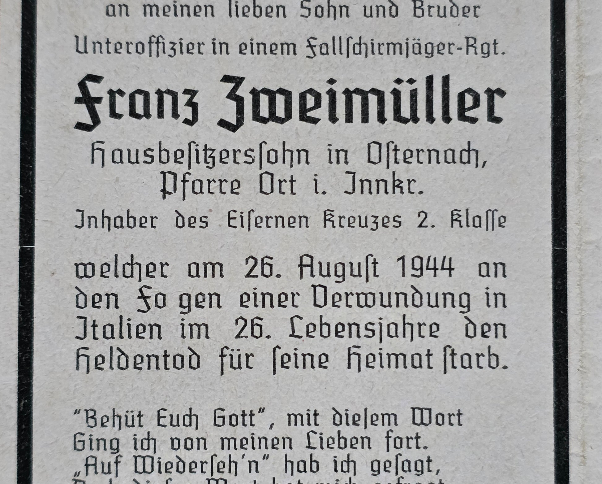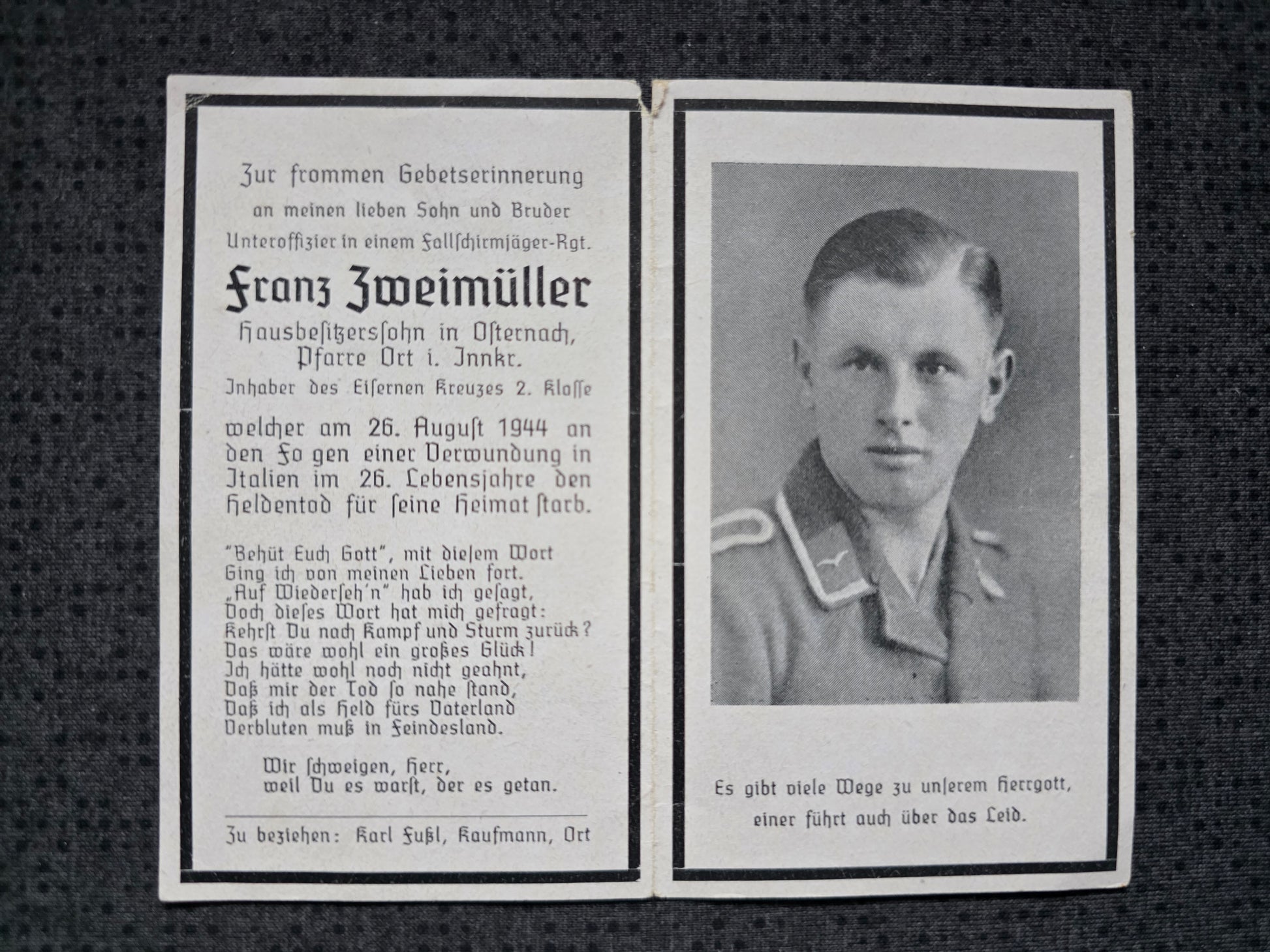 Sterbebild Unteroffizier Osternach Fallschirmjäger Regt. Futa-Pass Italien