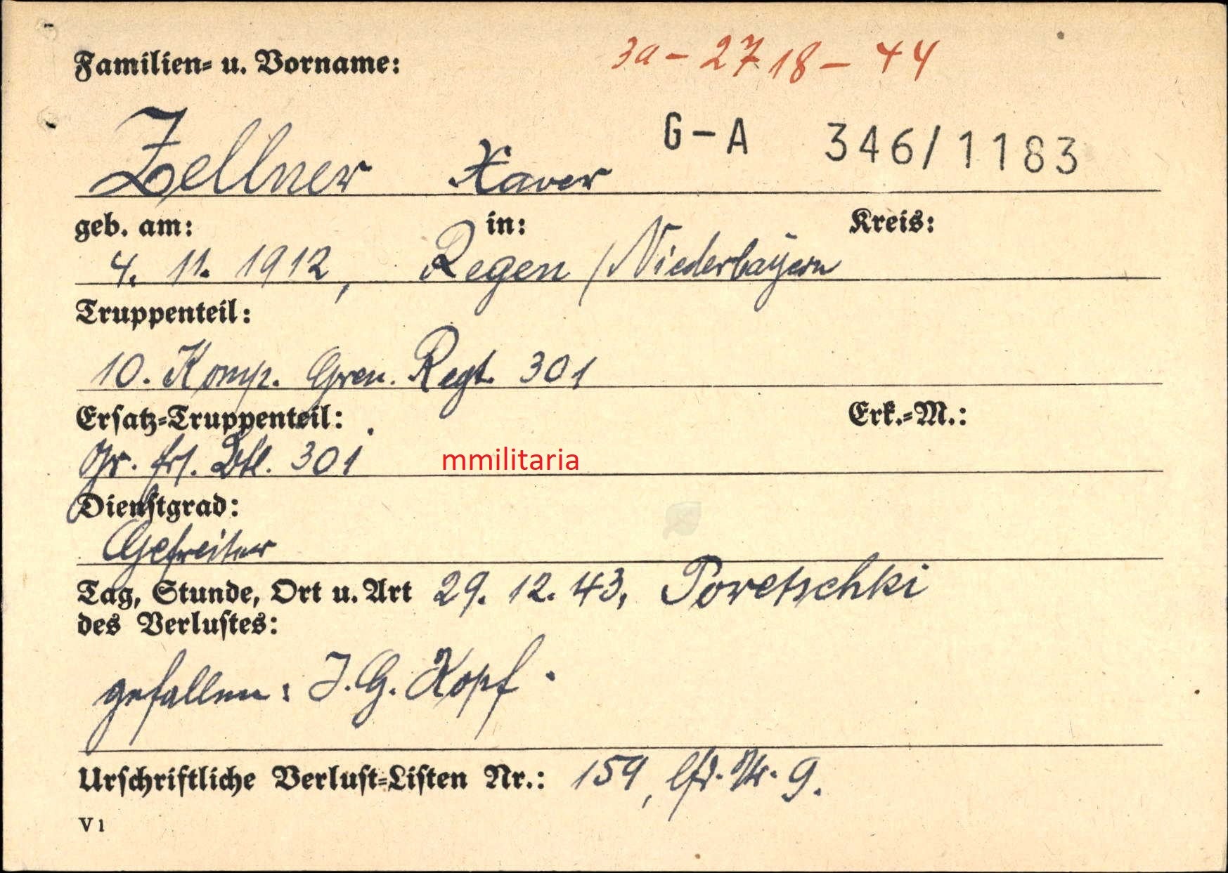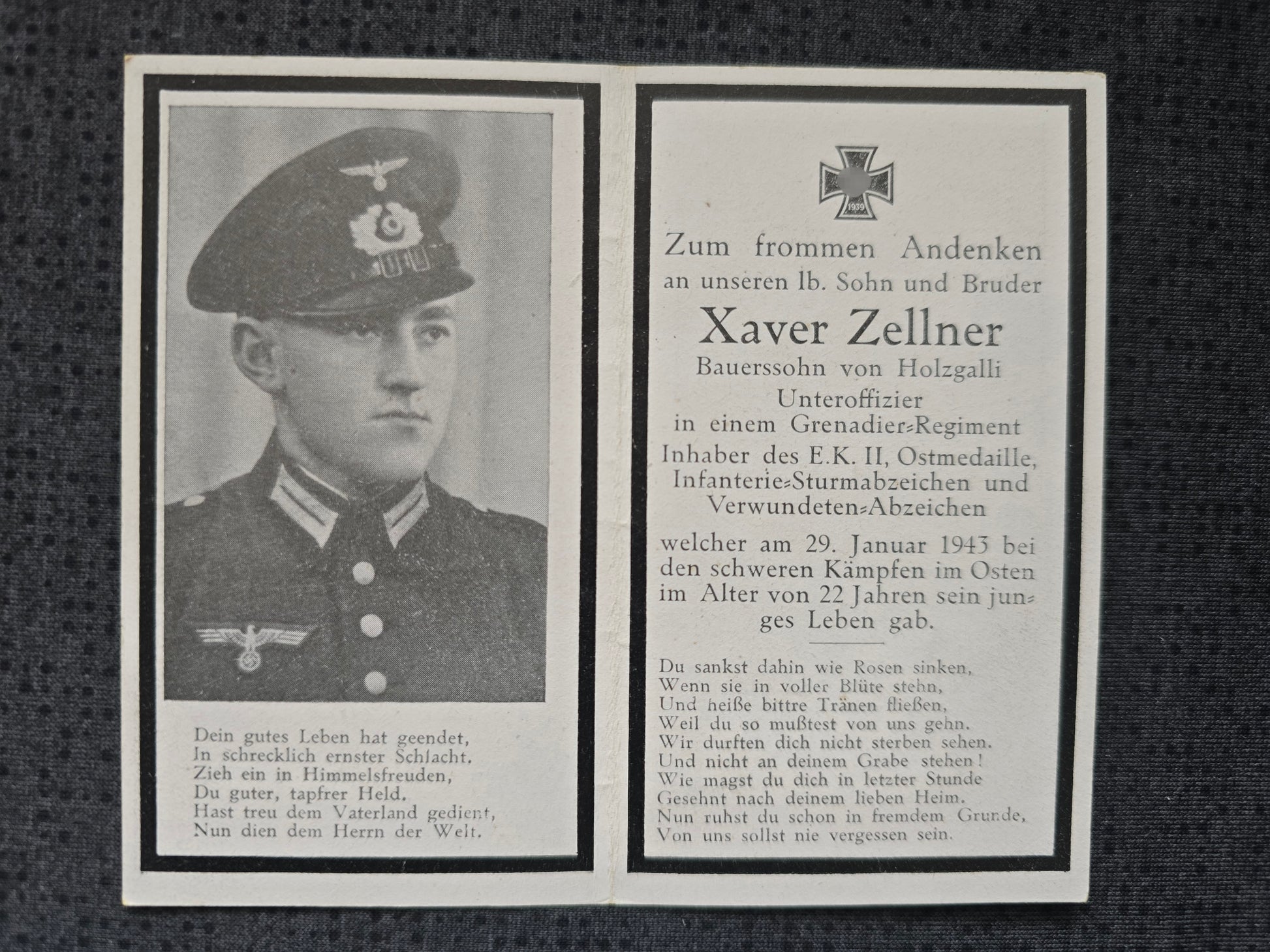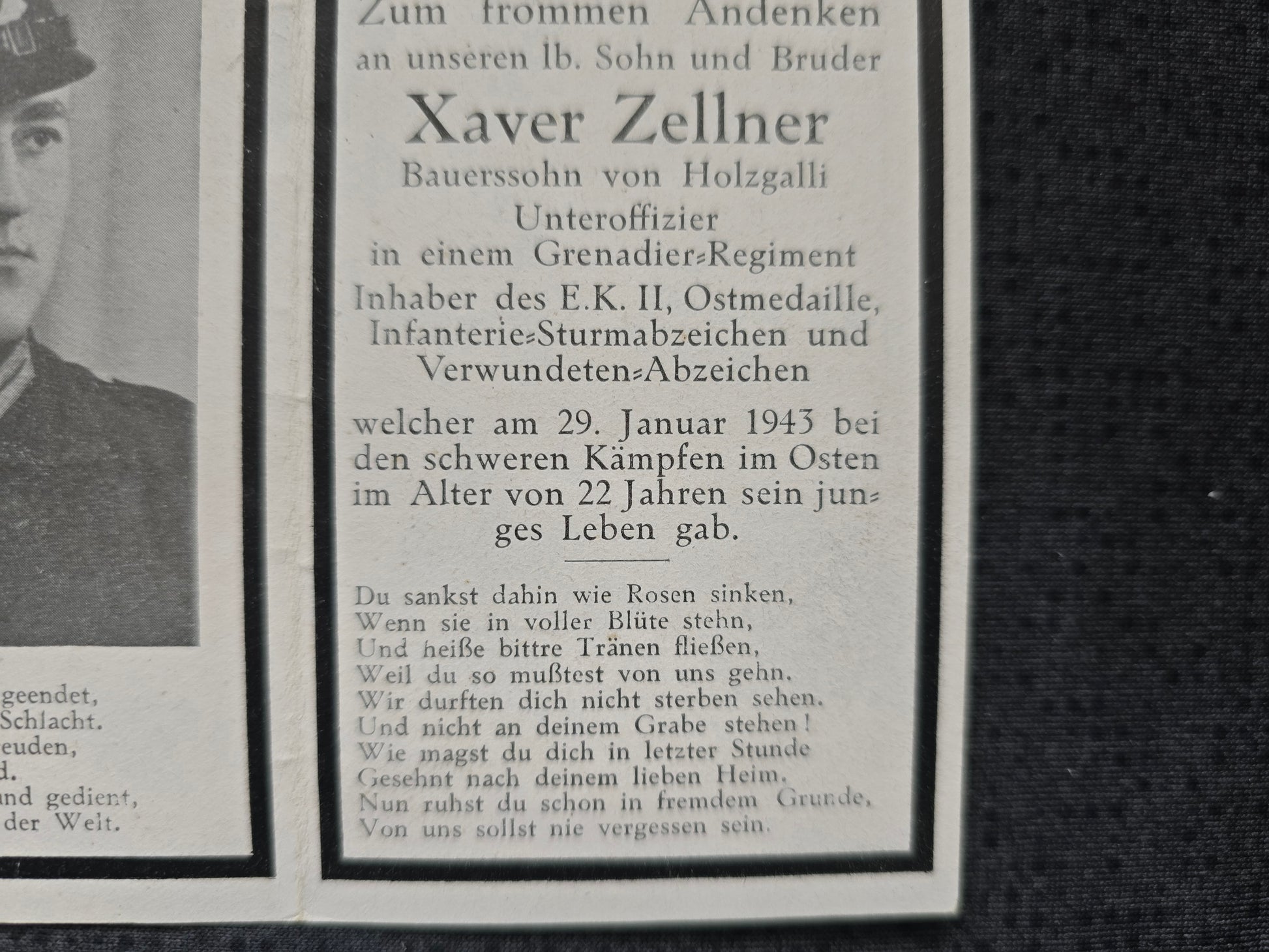 Sterbebild Unteroffizier Regen 10. Komp. Gren. Regt. 301 EK II Poretschki Weissrussland