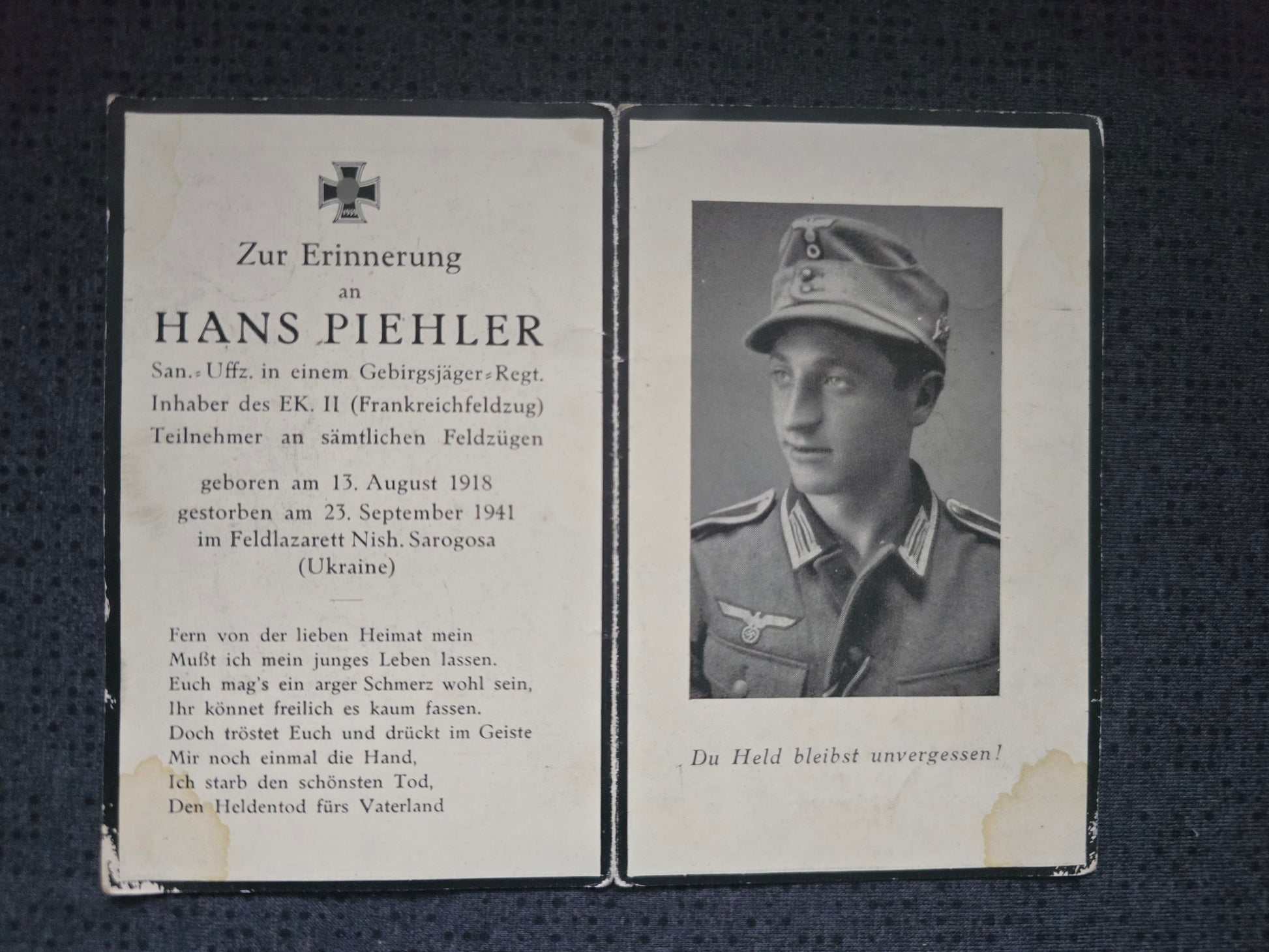 Sterbebild Unteroffizier Sanitäter Gebirgsjäger Regt. Nish Sarogosa Ukraine