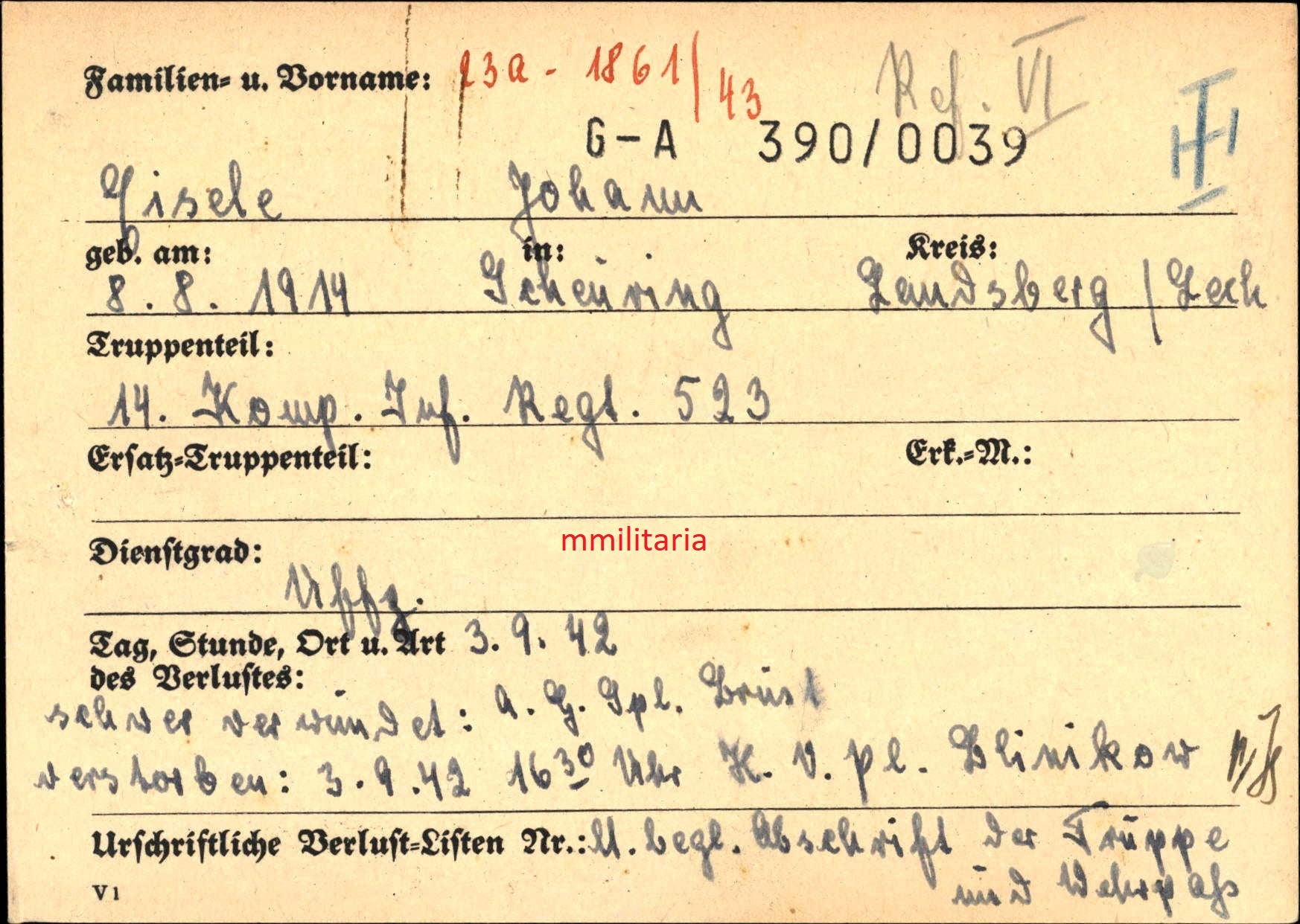 Gefallen am 03.09.1942 bei Blinikow (Russland)