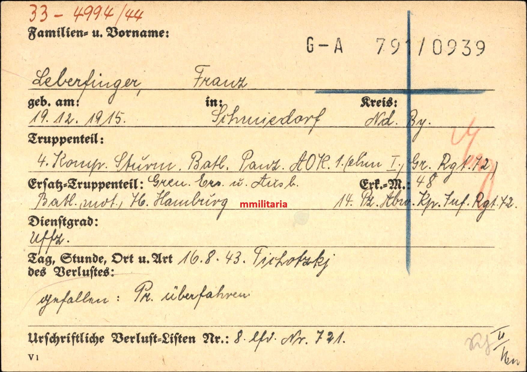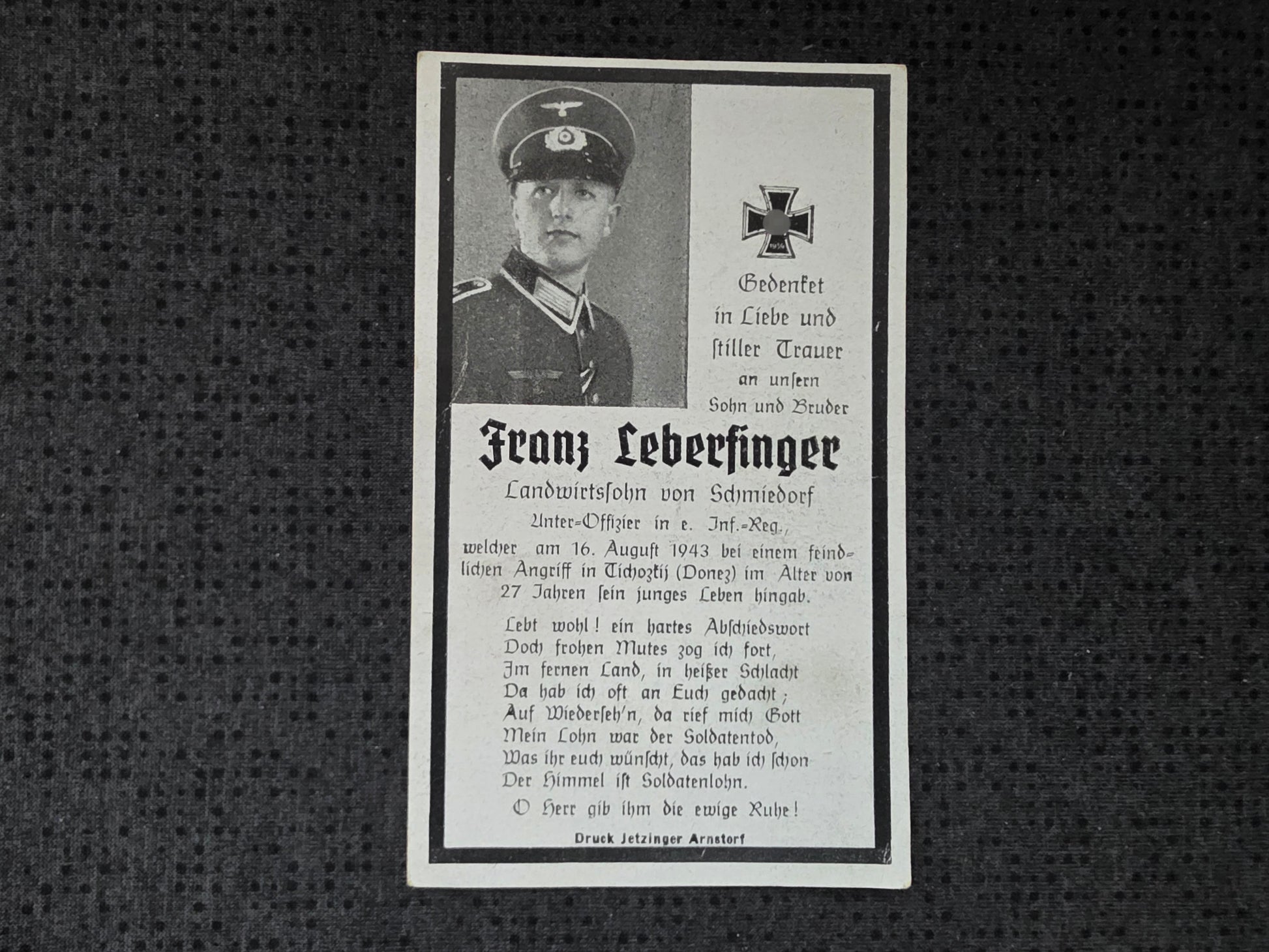 Sterbebild Unteroffizier Schmiedorf 4. Komp. Sturm-Btl. Panzer AOK 1 Tichotzky Ukraine