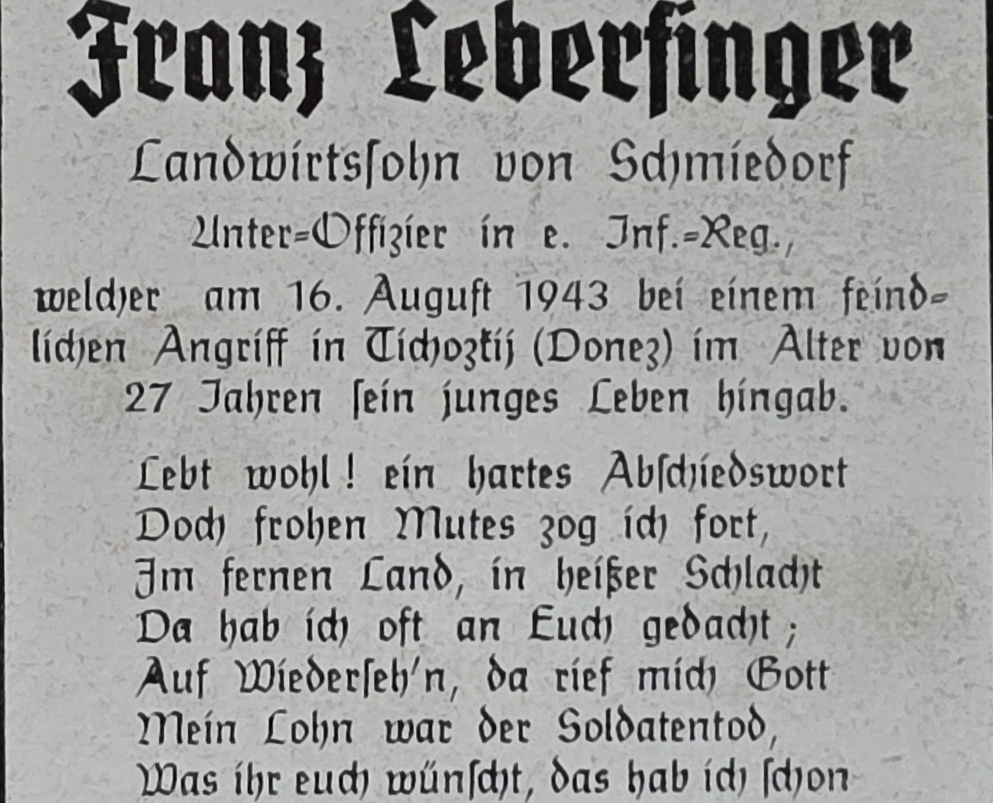 Gefallen am 16.08.1943 in Tichotzky (Ukraine)