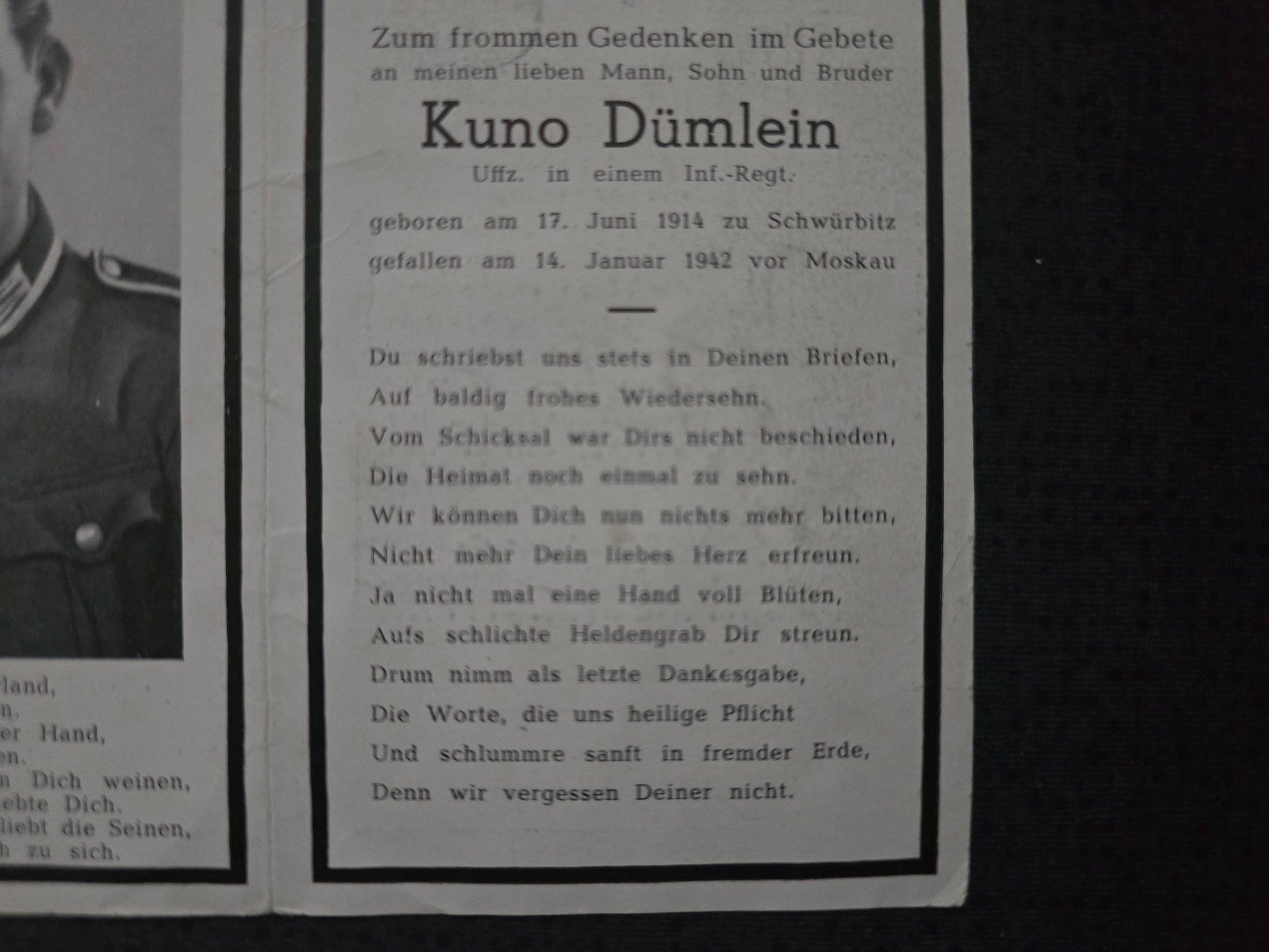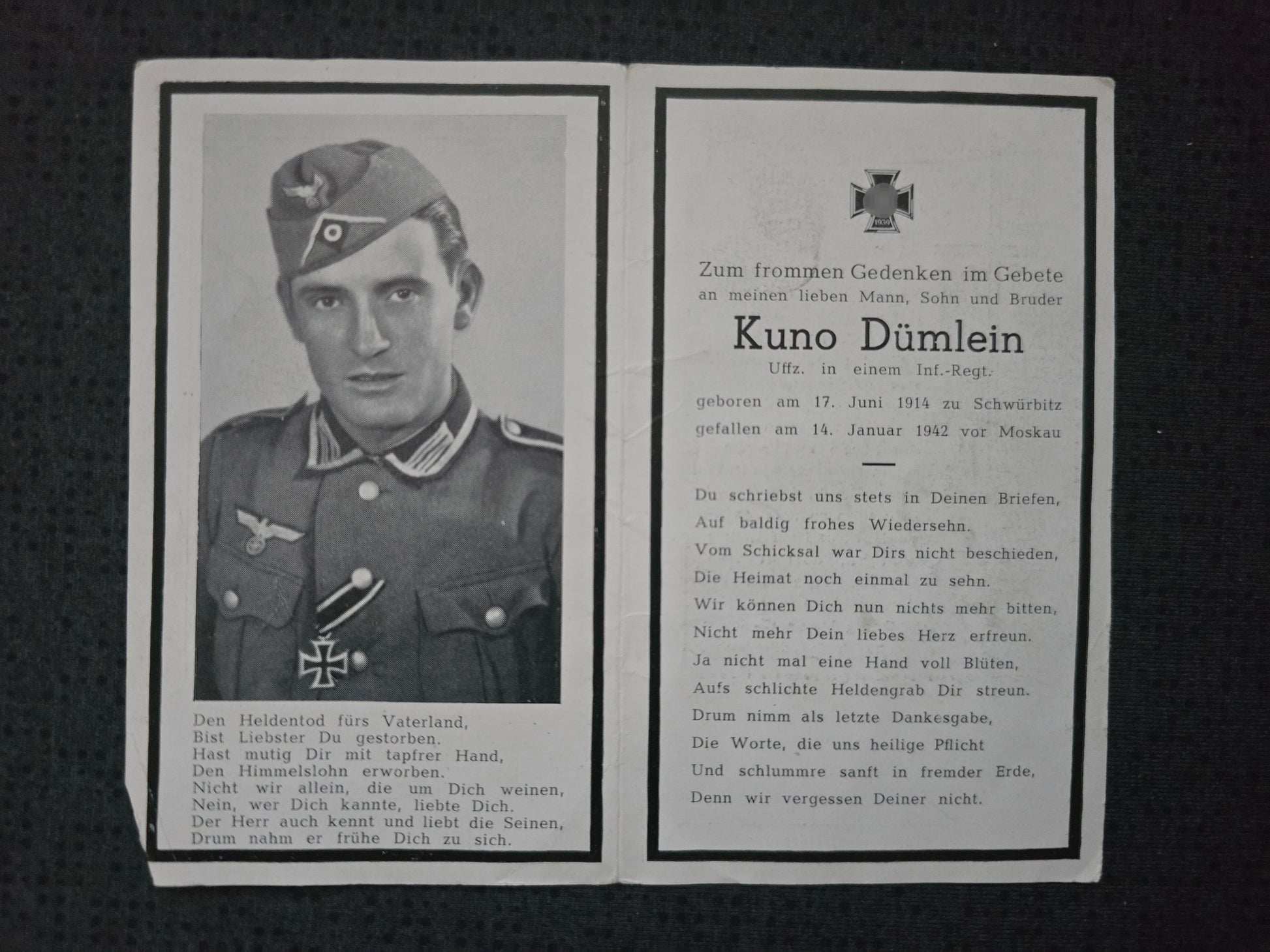 Sterbebild Unteroffizier Schwürbitz 10. Komp. Inf. Regt. 351 Moskau Russland