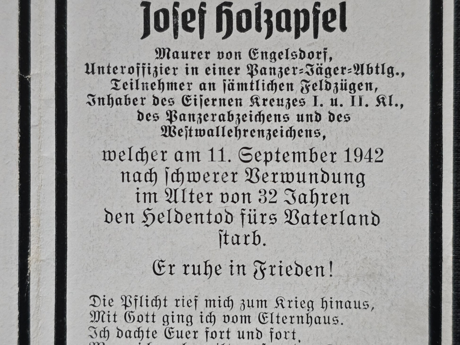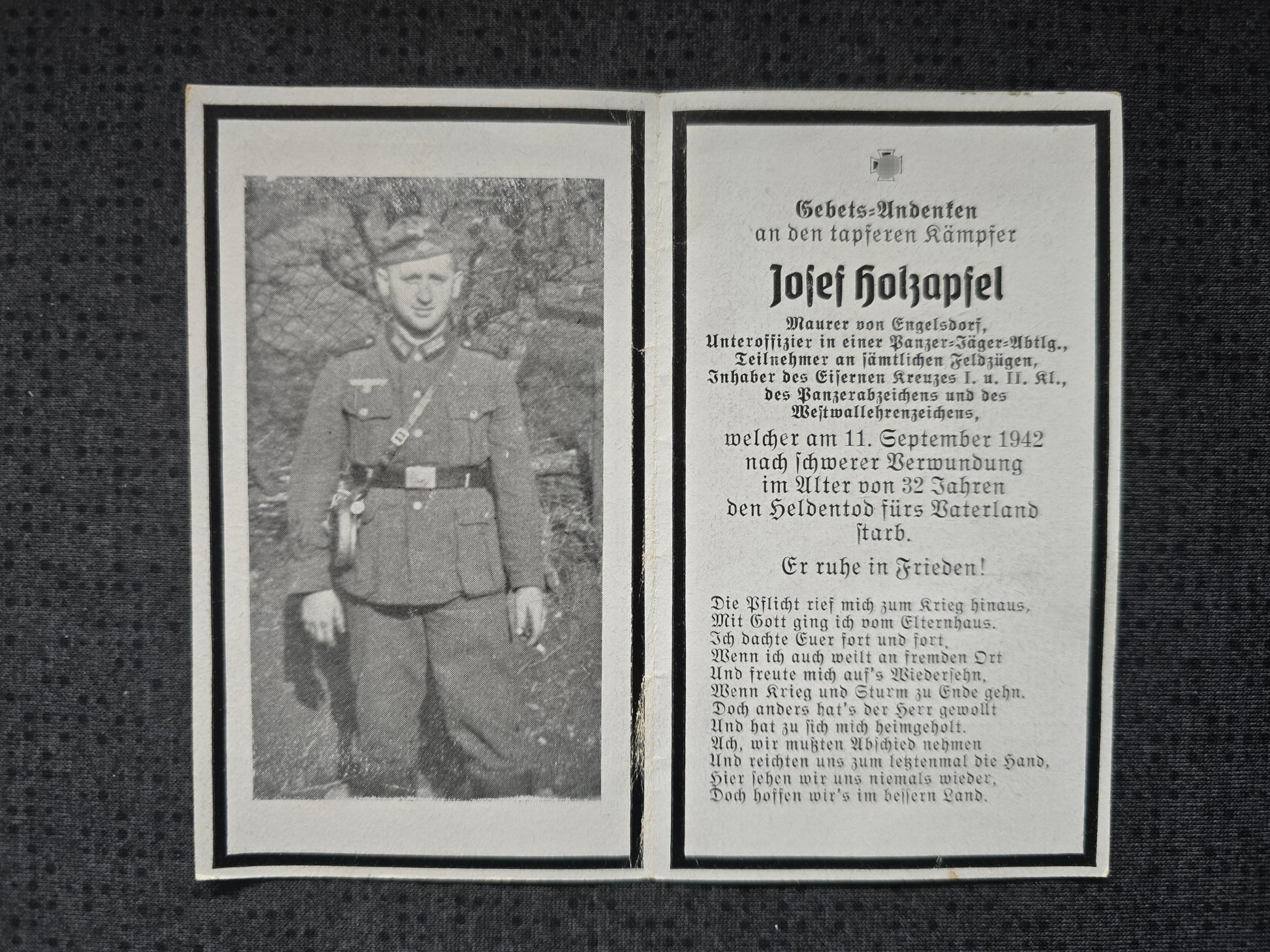 Sterbebild Unteroffizier Siegersdorf 3. Panzer-Jäger Abt. 173 PKA Westwallabzeichen Gaiduk Russland