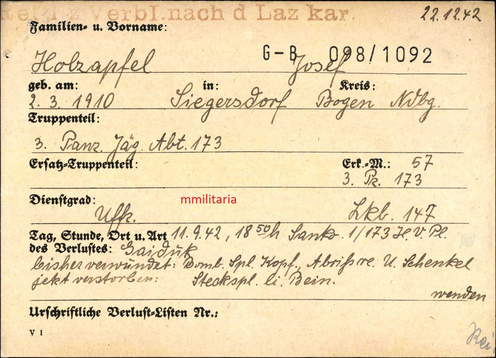 Gefallen am 11.09.1942 in Gaiduk (Russland)