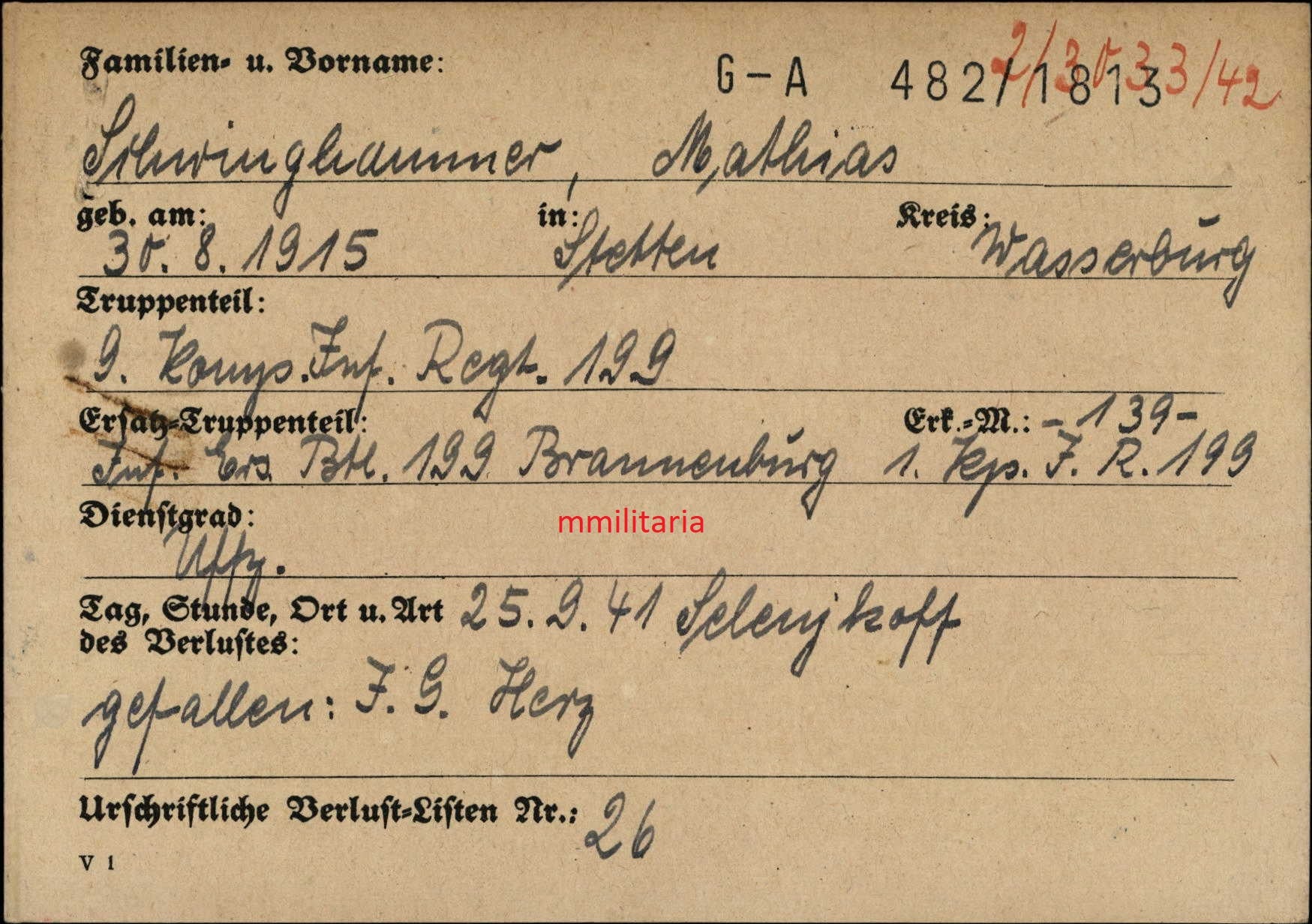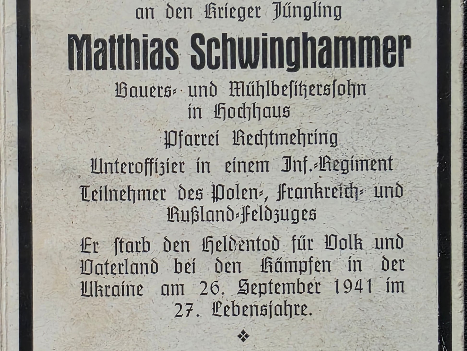 Gefallen am 26.09.1941 in der Ukraine