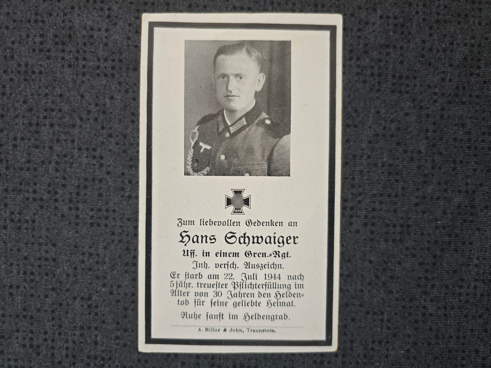 Sterbebild Unteroffizier Traunstein Grenadier Regt. Osten