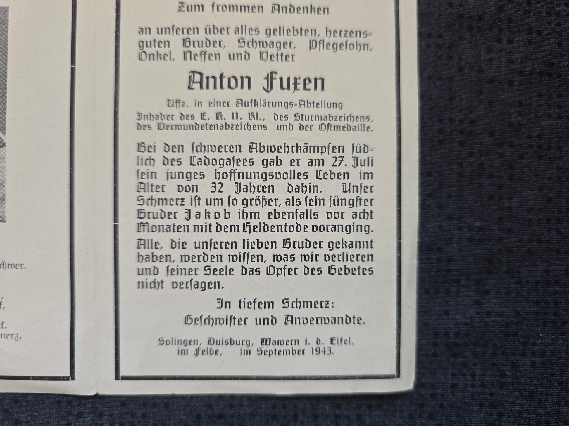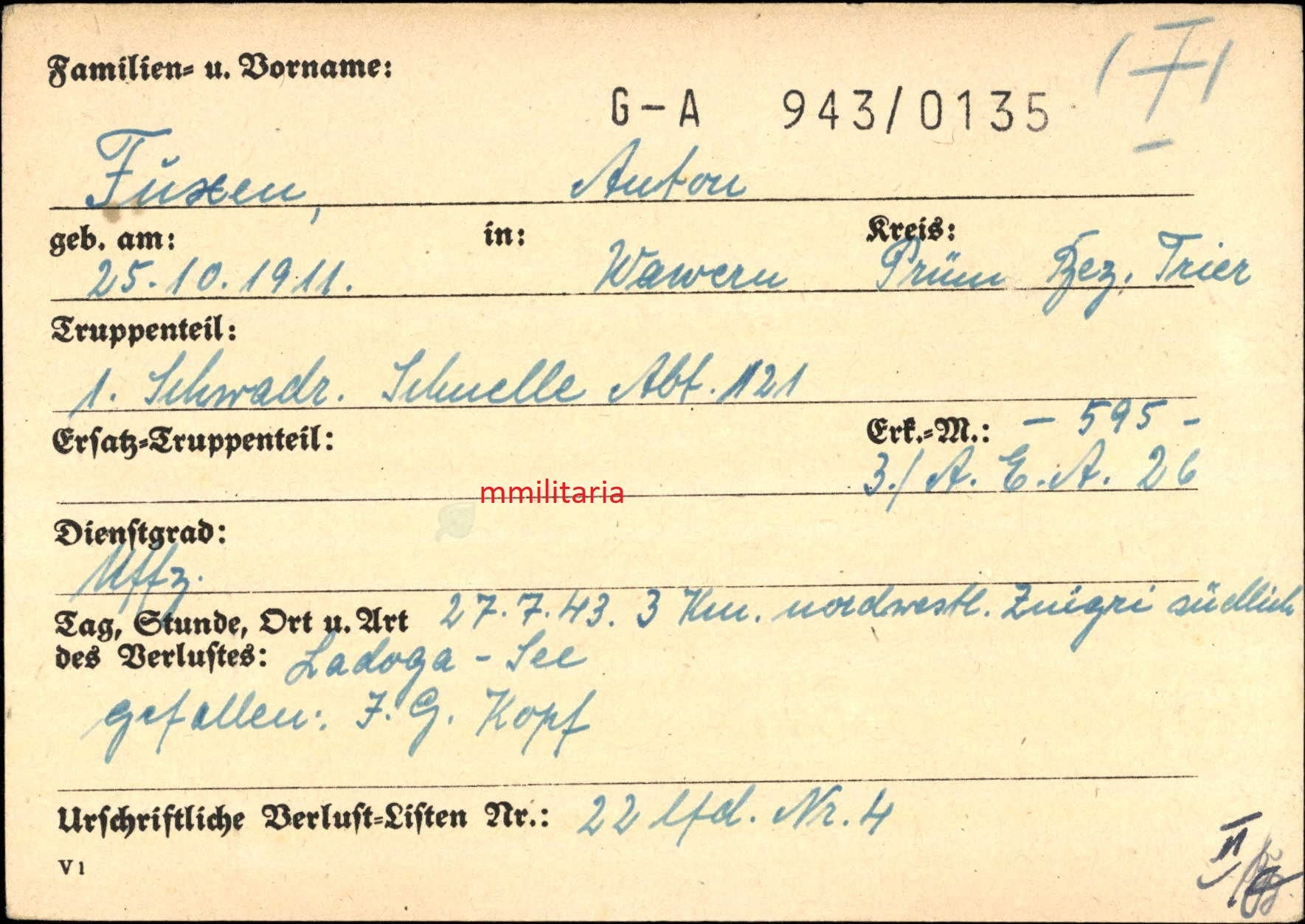 Gefallen am 27.07.1943 nahe Ladogasee (Russland)