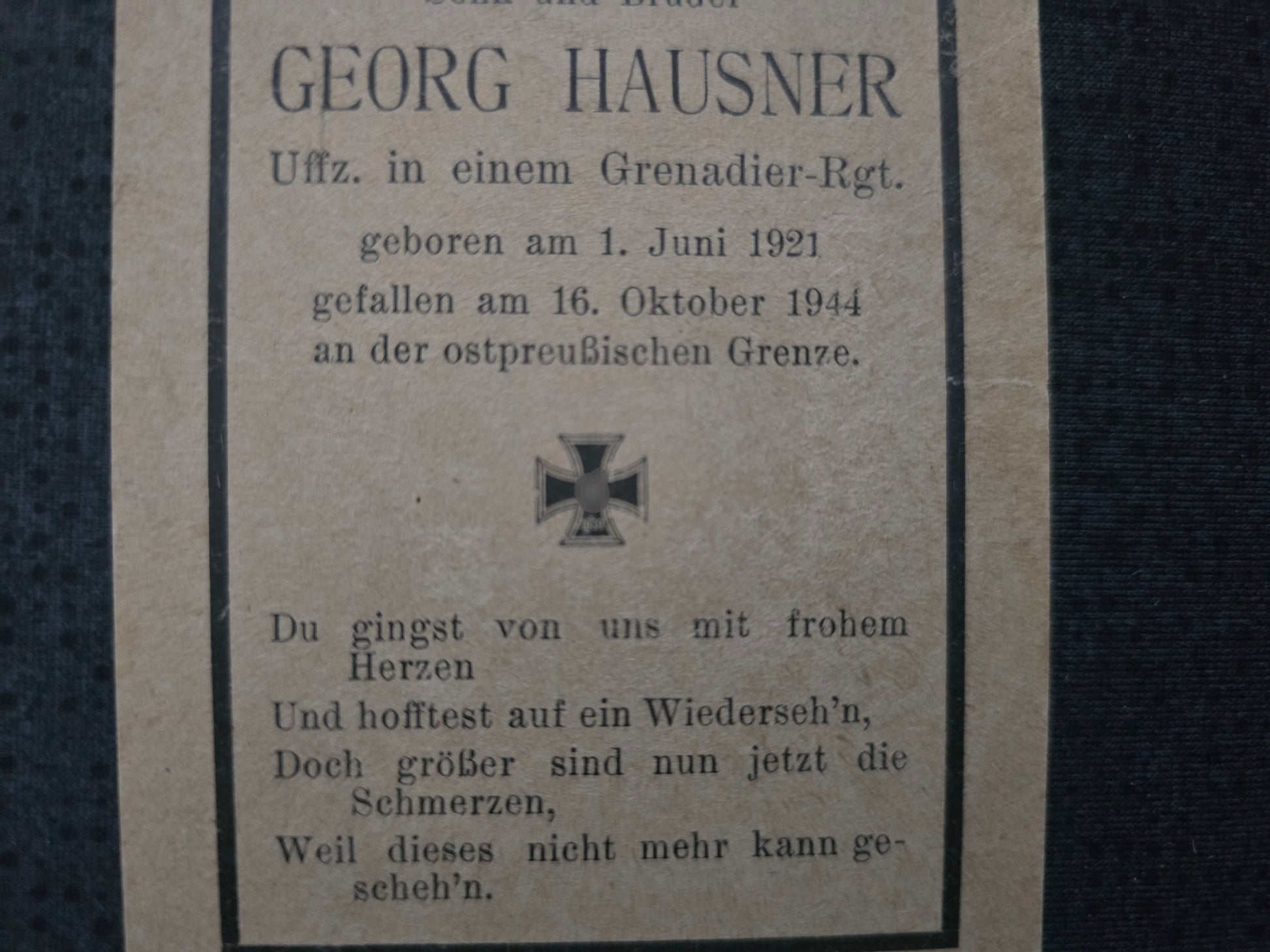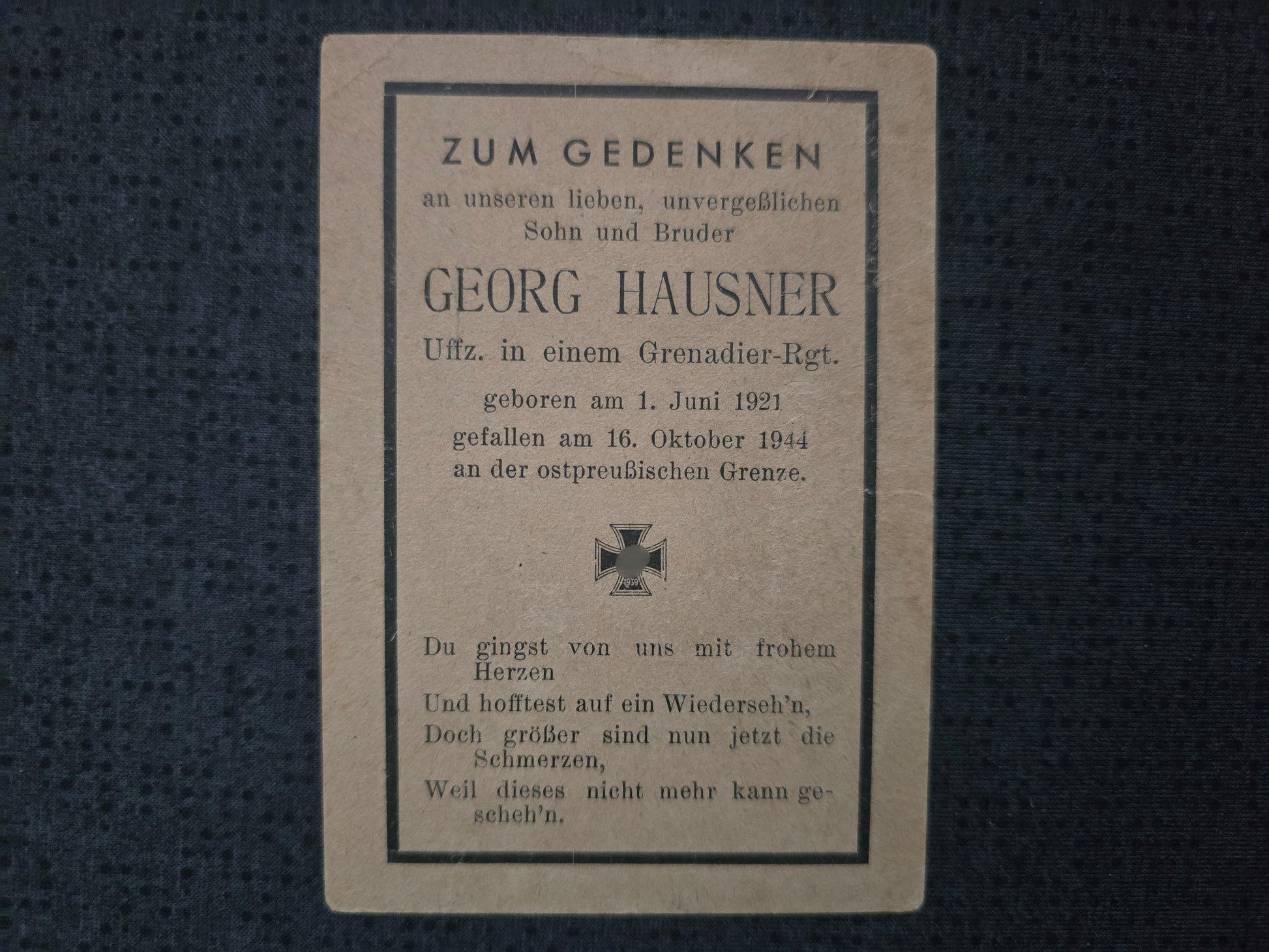 Sterbebild Unteroffizier Weiden 4. Gren. Regt. 1097 Ostpreußen Kumeziai Litauen