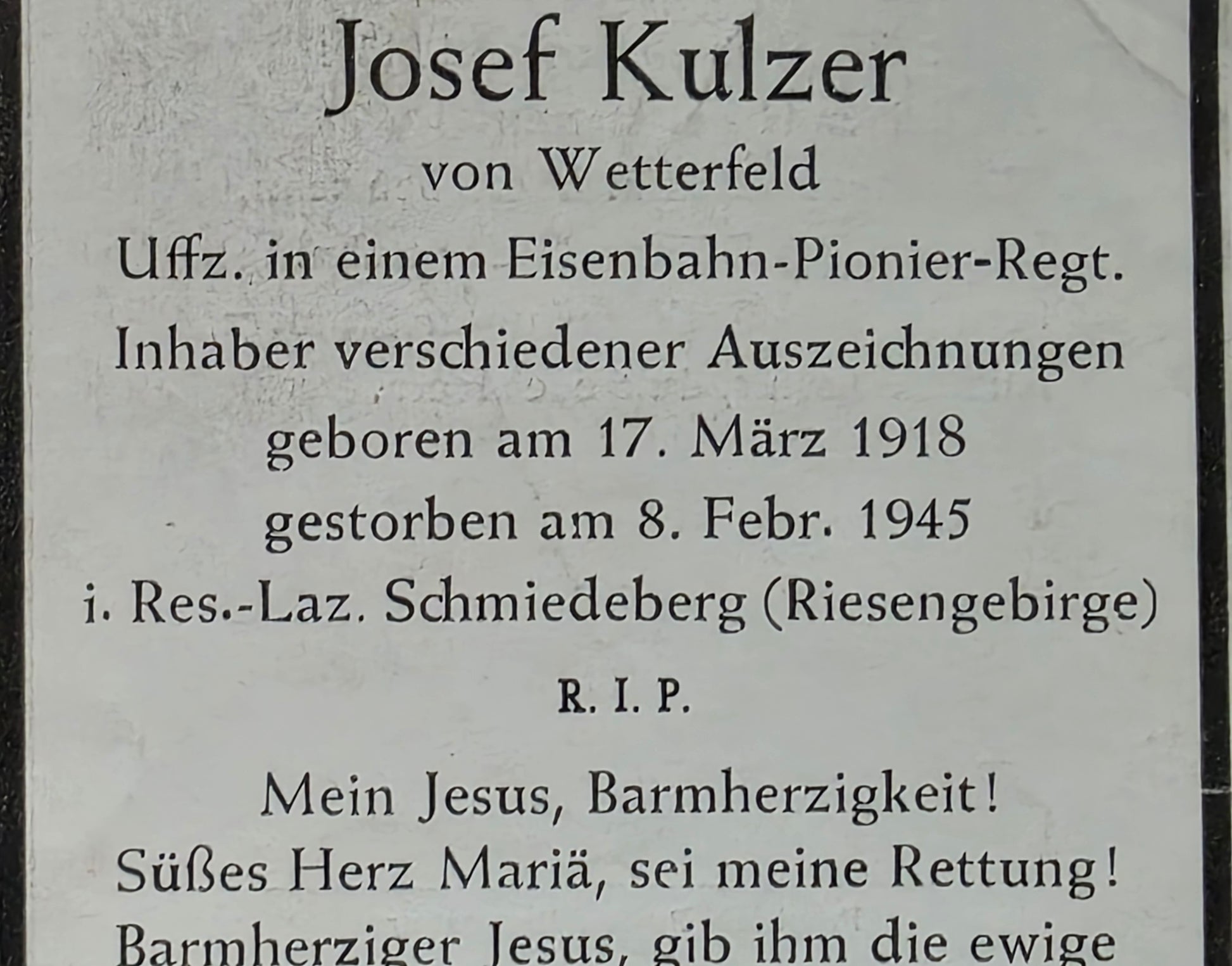 Sterbebild Unteroffizier Wetterfeld Eisenbahn-Pionier Regt. Schmiedeberg Kowary Polen