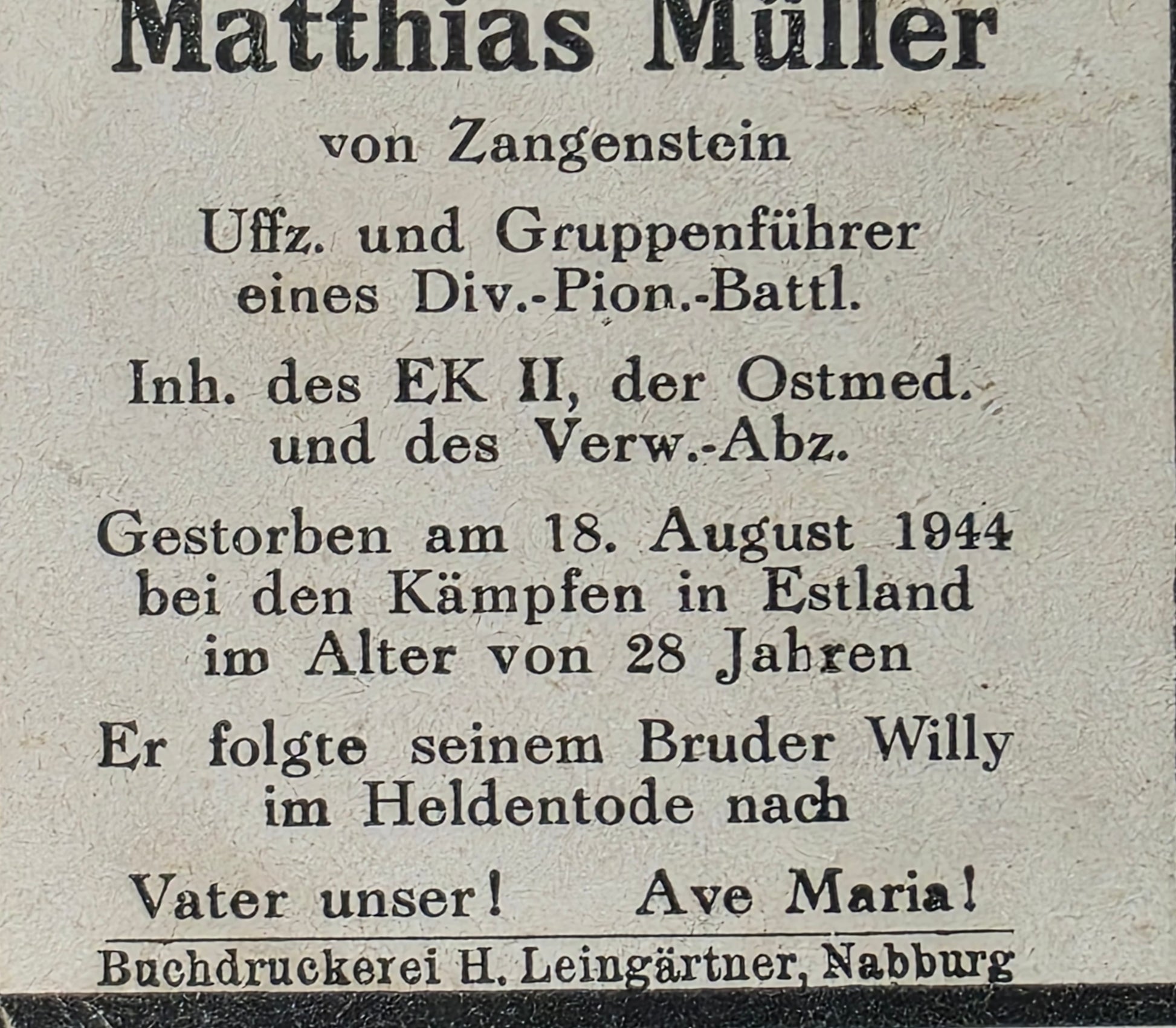 Sterbebild Unteroffizier Zangenstein Gruppenführer Pionier Btl. Tartu Estland
