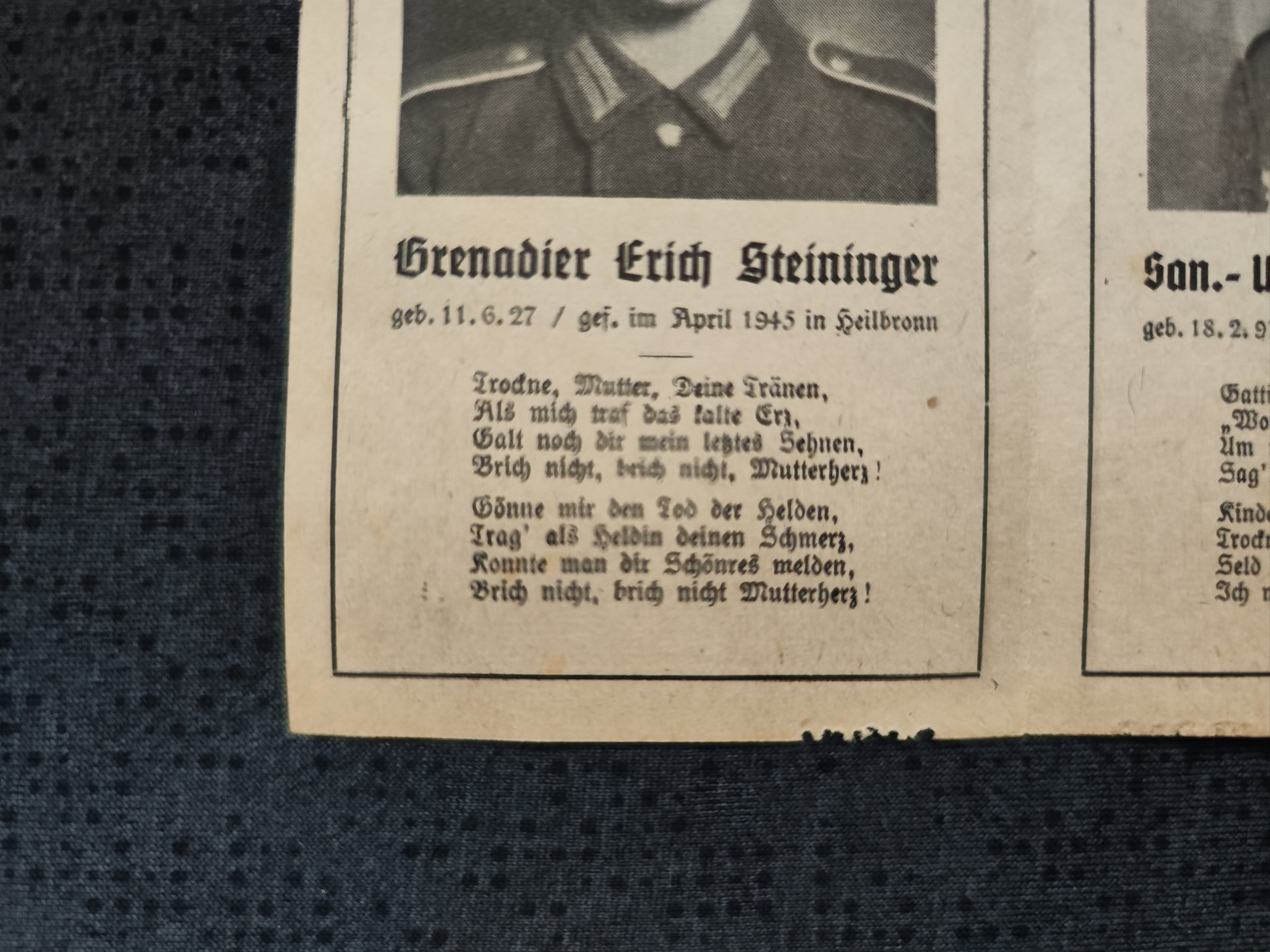 Gefallen Anfang April 1945 in Heilbronn