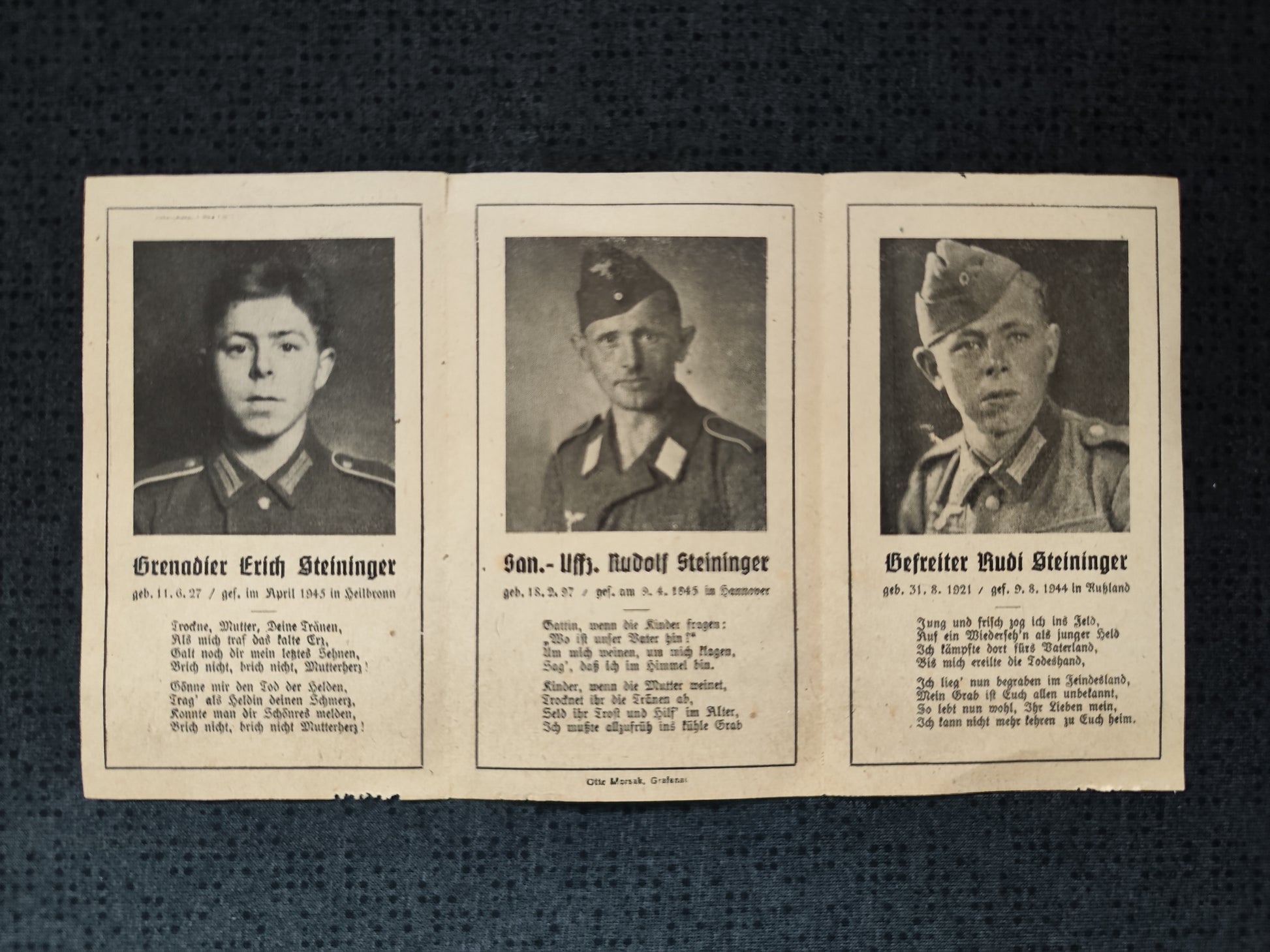 Sterbebild Vater & Söhne Grenadier Unteroffizier Gefreiter 8. Gren. Regt. 170 Endkampf Heimatfront Russland