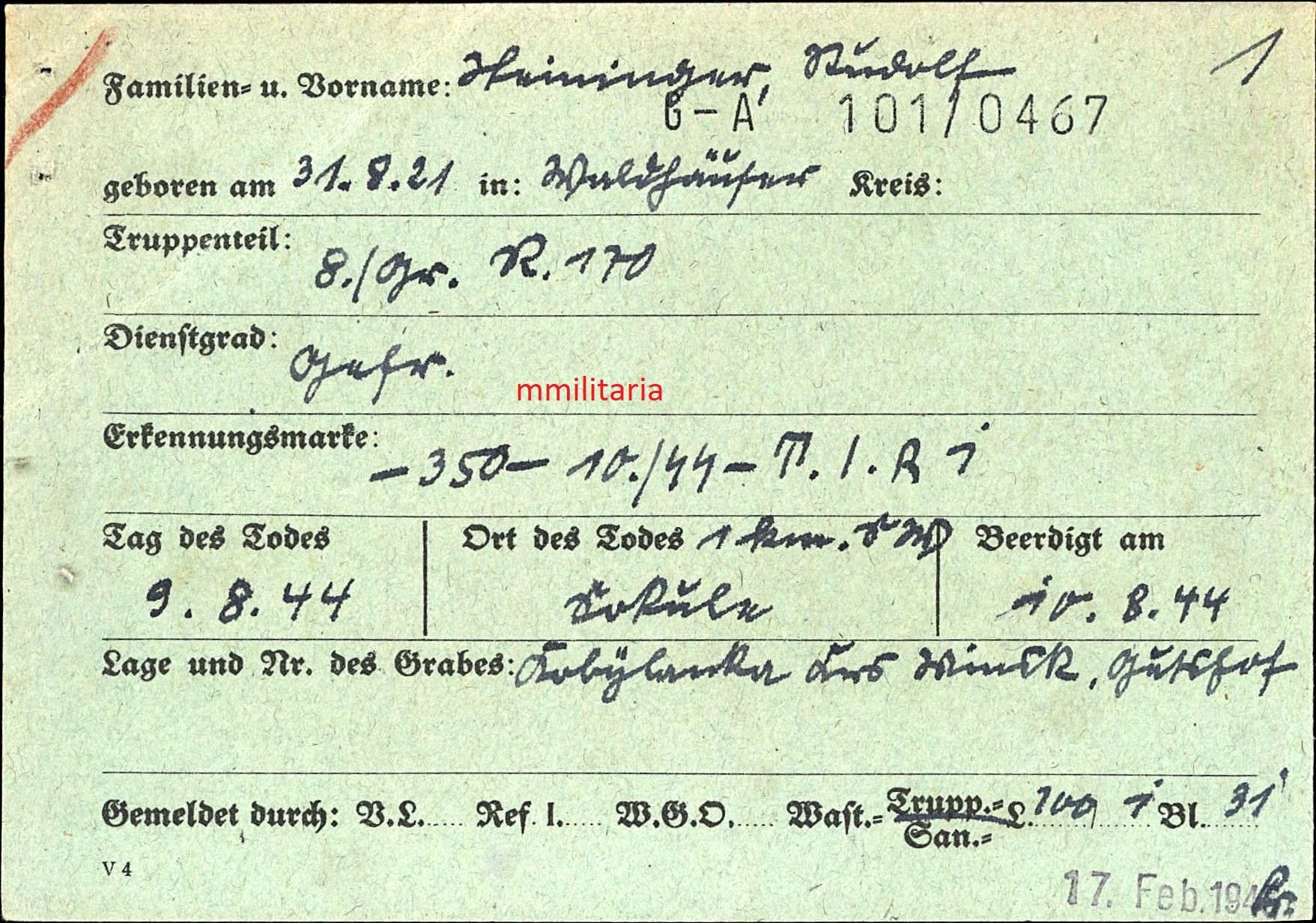 Gefallen am 09.08.1944 in Sopule (Russland)