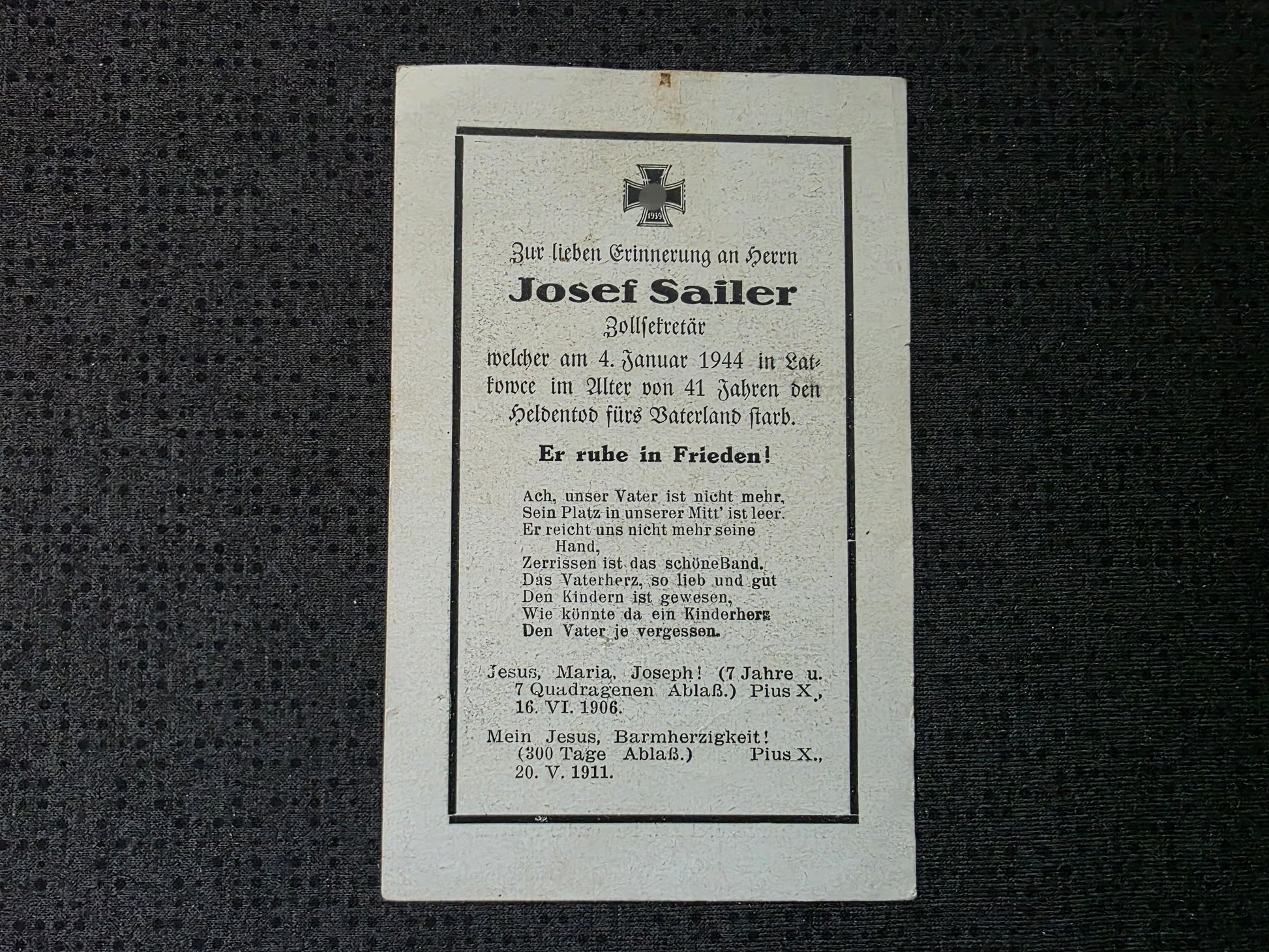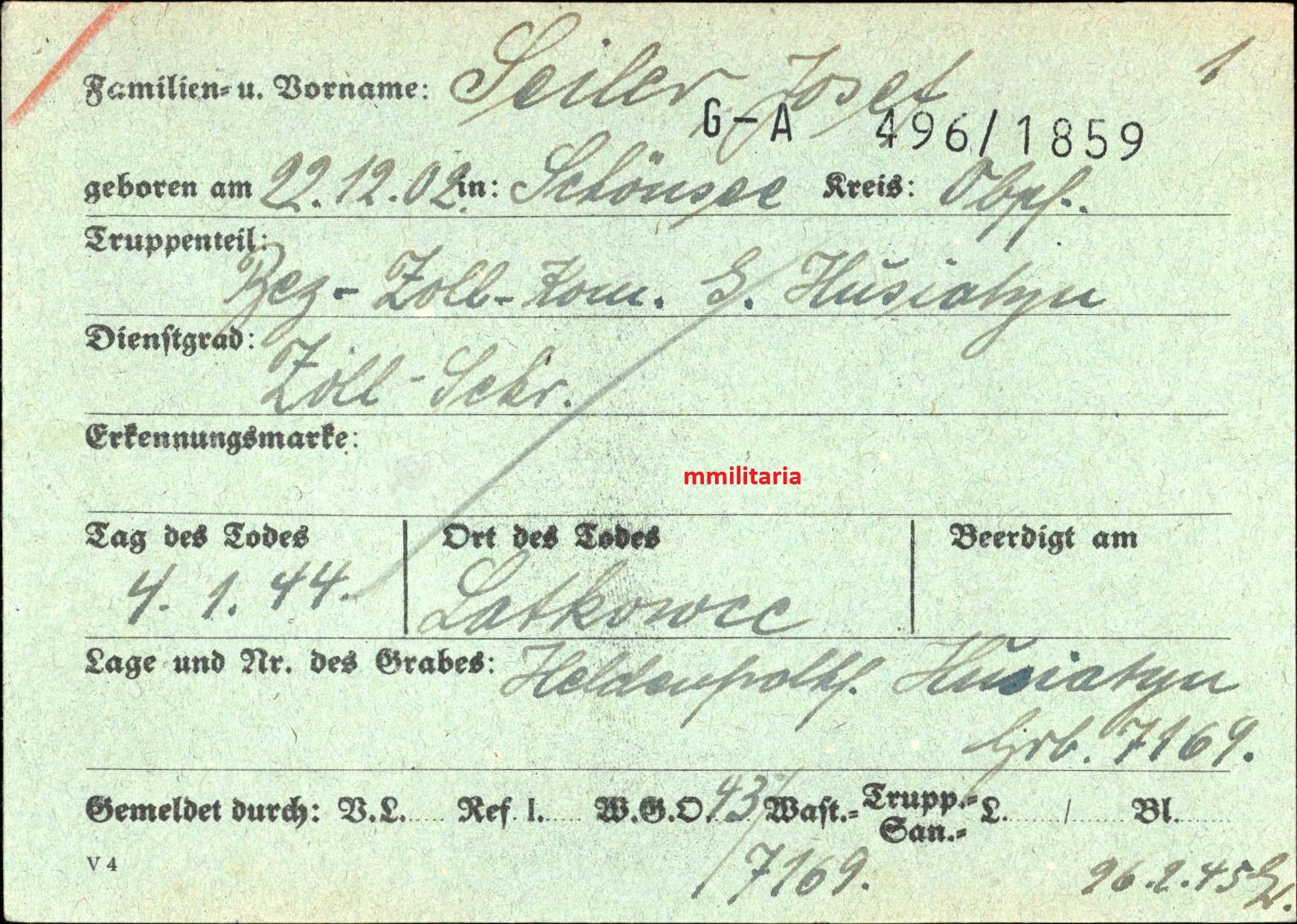 Sterbebild Zollsekretär Schönsee Bezirk-Zoll-Kommandatur Husiatyn Łatkowce Ukraine