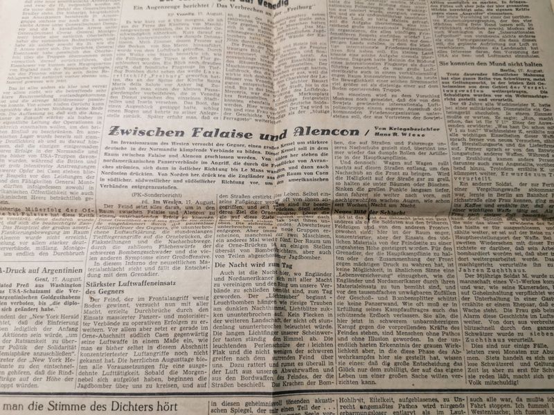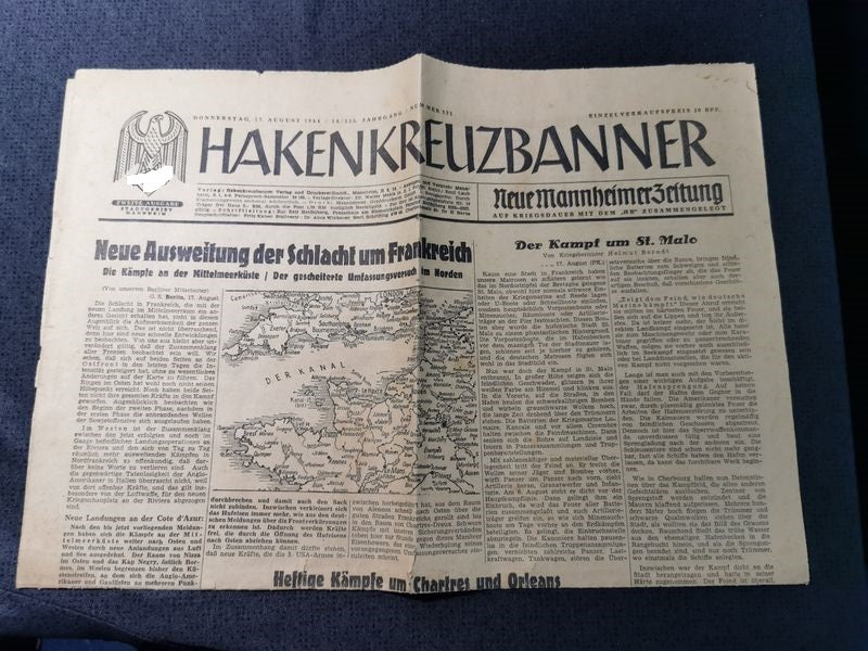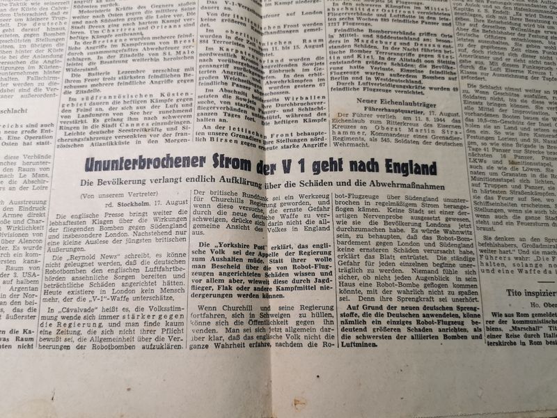 Zeitung Stadtgebiet Mannheim vom 17.08.1944 Berichte über Kämpfe in der Normandie V1 England